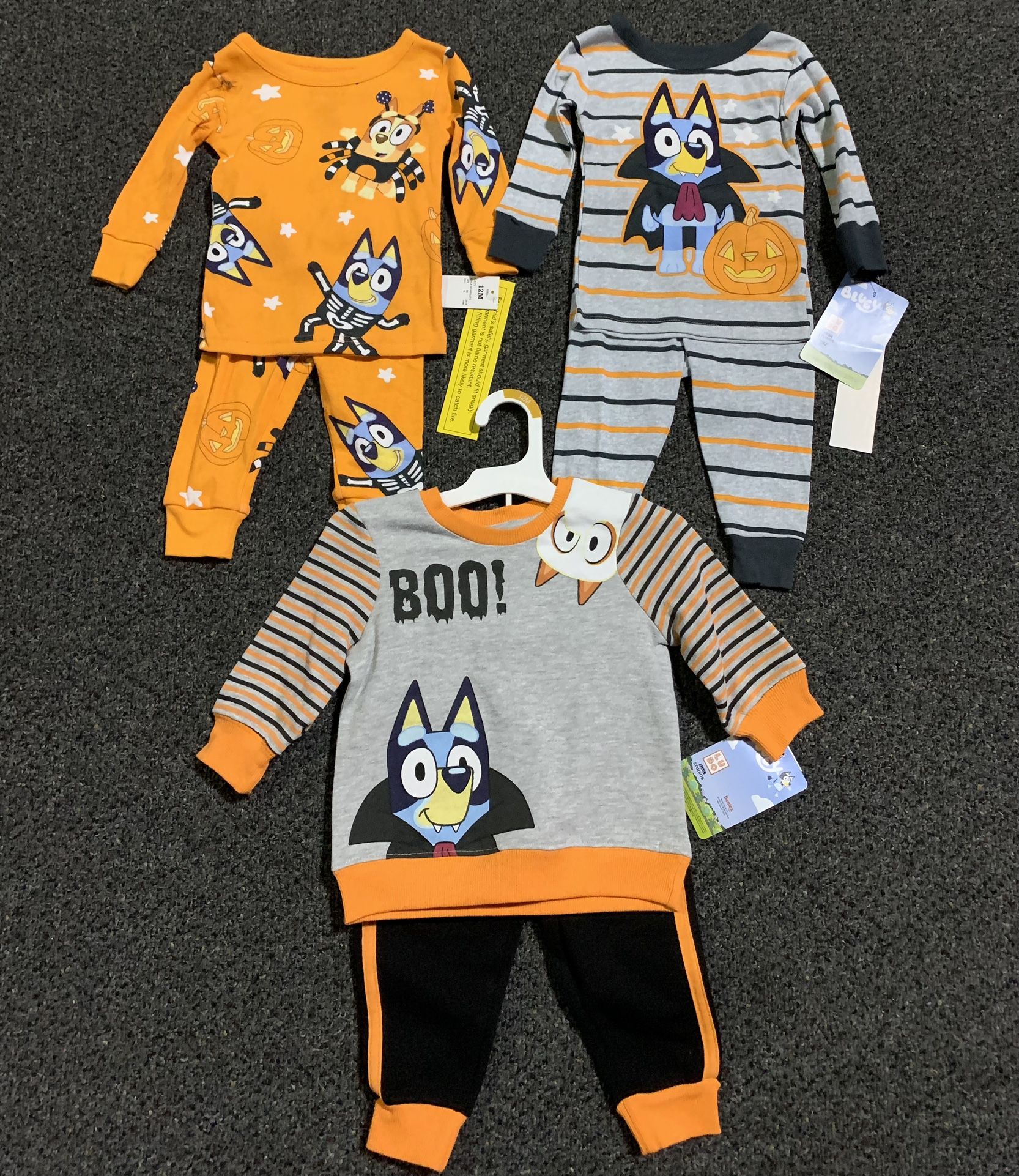 Bundle of brand new Bluey boys 12 month 2 Halloween pajama sets and sweatshirt and pants outfit