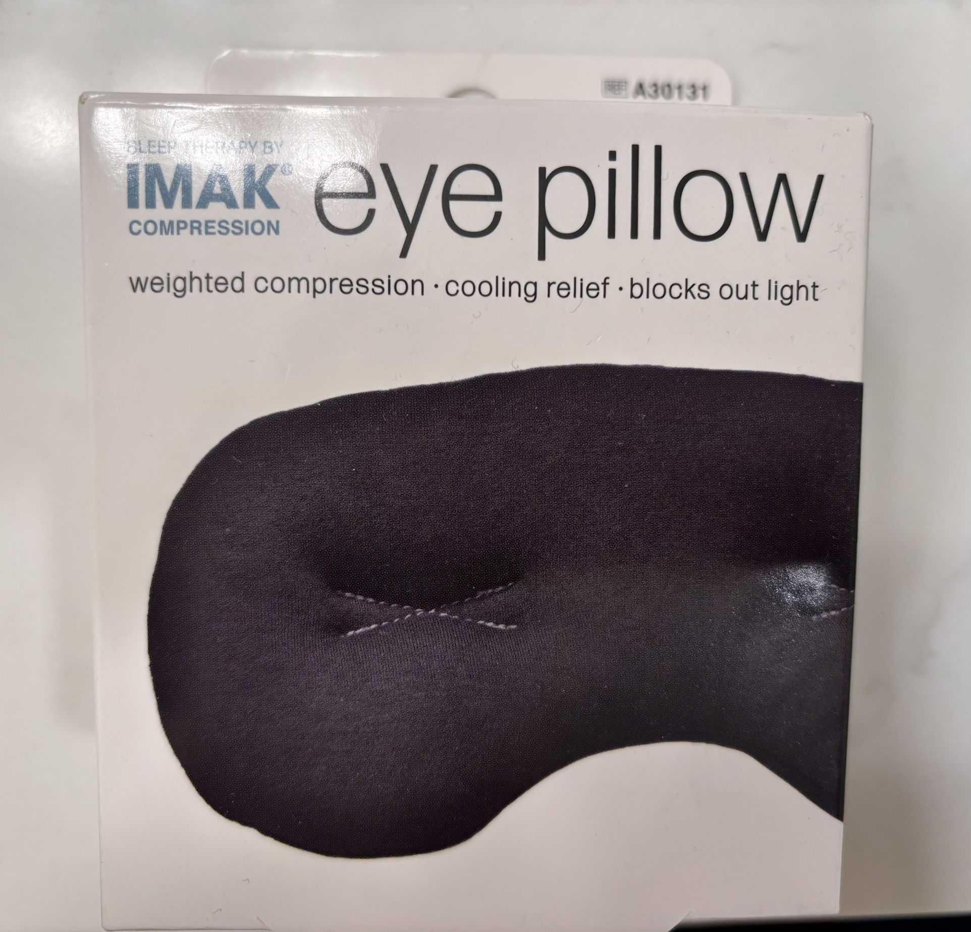 IMAK Eye Mask Pillow - Brand New The IMAK Eye Mask Pillow was designed by an Orthopedic Surgeon, with massaging ergoBeads inside that create a gentle, soothing massaging effect around the eyes. The beads allow the mask to conform to the contours around the eyes, effectively blocking out light, while the unique stitching alleviates direct pressure on eyes. Made of breathable cotton material, the mask is comfortable to wear and is secured in place with an elastic strap. For added stress relief, place the eye mask pillow in the freezer to provide cool relief without the shock of ice or gel packs. The IMAK Eye Mask Pillow provides relief for eye strain, puffy eyes, headaches, sinus pain, migraines, post surgery.