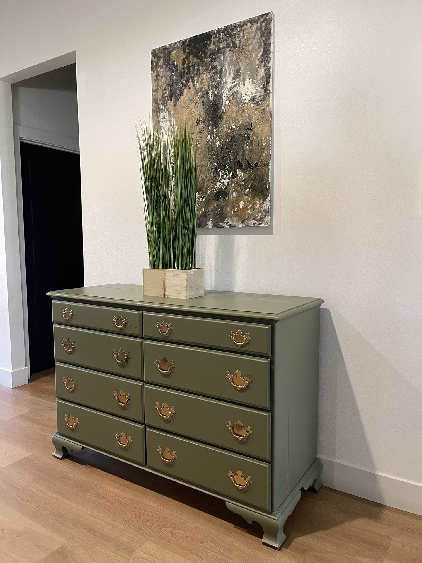 Olive colored buffet, dresser, or entryway piece, solid wood