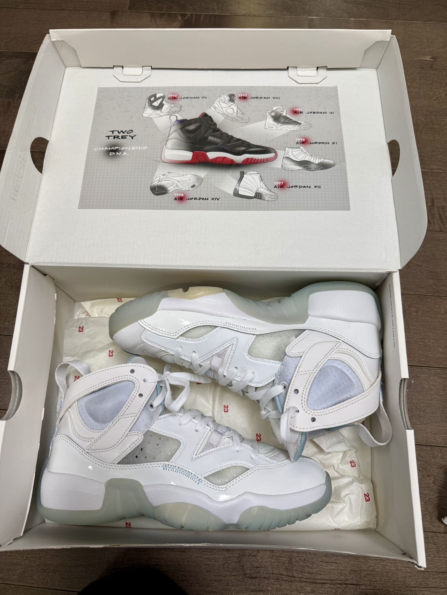 $150 women’s jumpman two trey gymshoes. Size 7.5. Purchased for my daughter but they were never worn. Pick up is near archer and Harlem. Cash only.