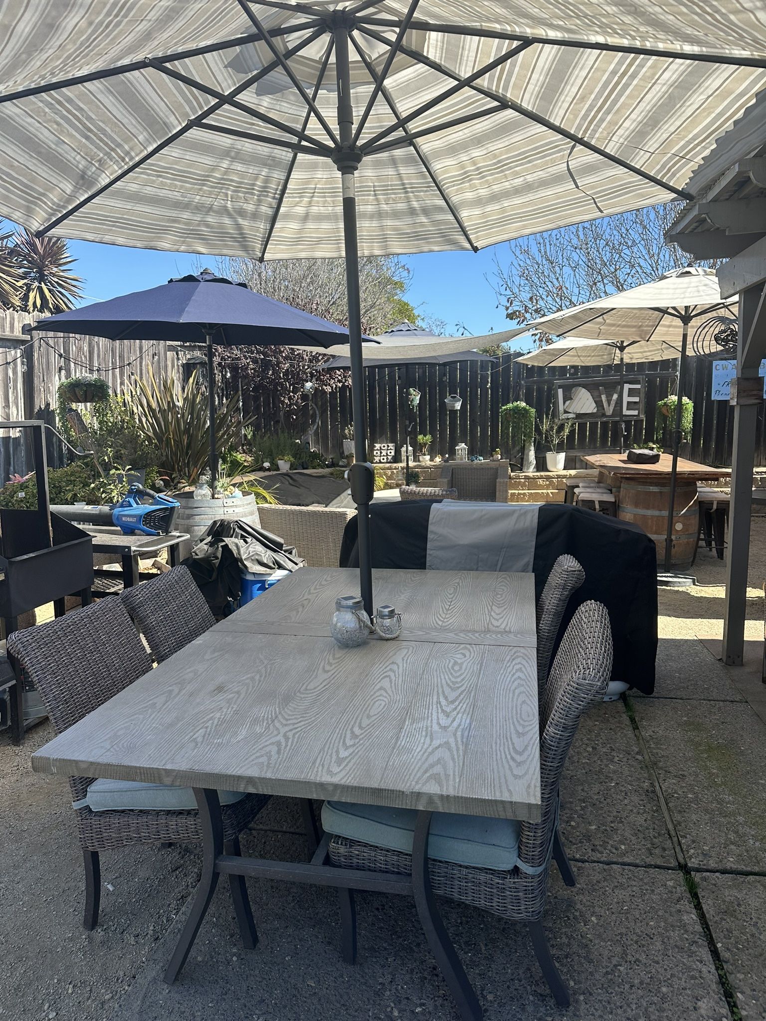 Nice patio set , 4 seat possible 6 if interested. One year old, great condition. Umbrella not included