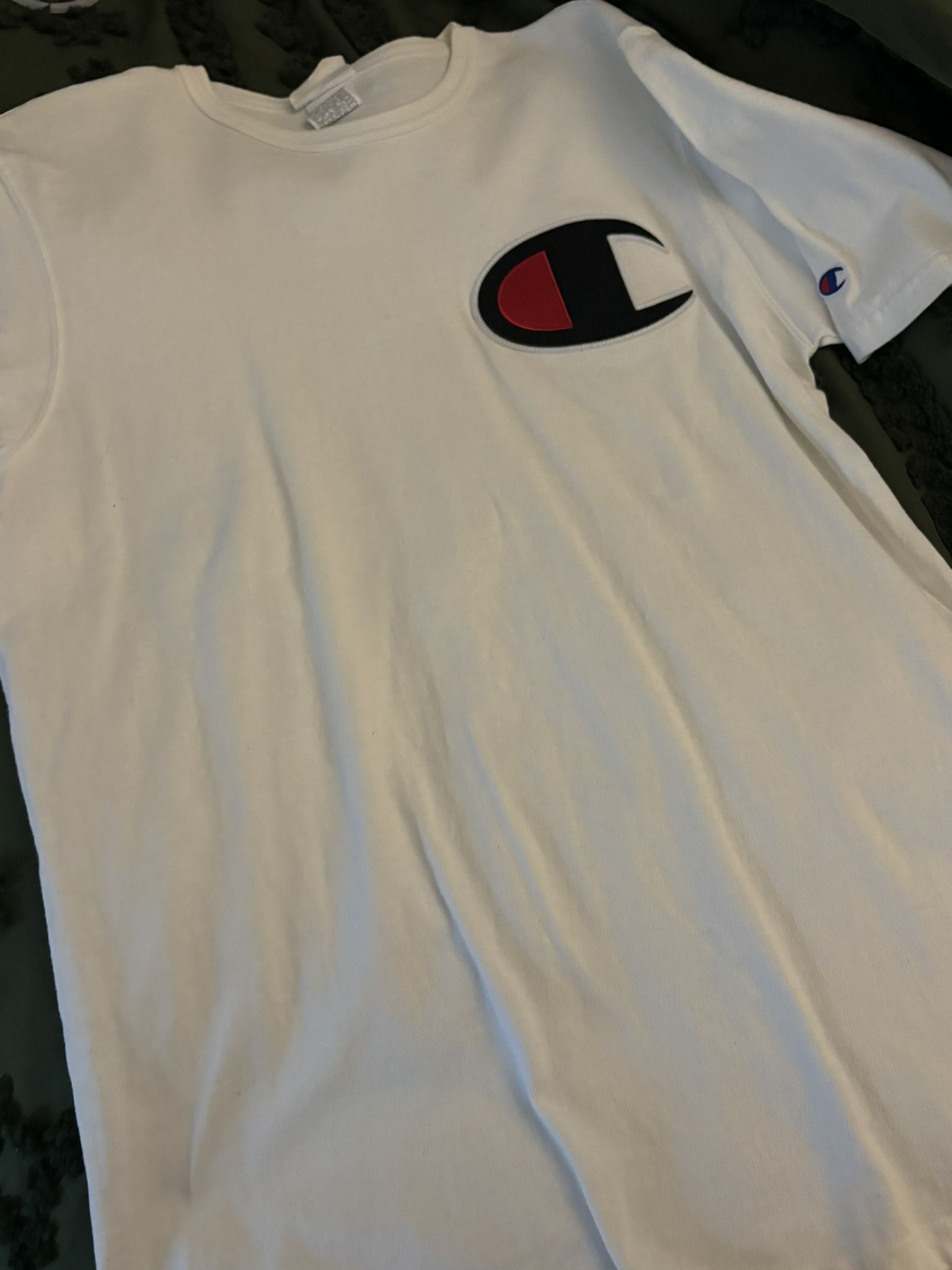 Like new men’s champion T-Shirt Patch logo , thick/heavy fabric tee Size Large