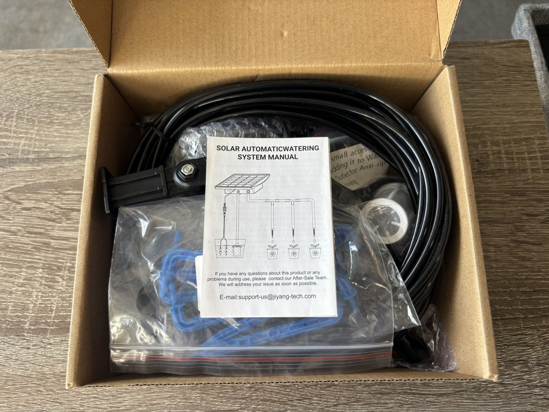 Brand new solar‑powered automatic drip irrigation kit for about 10–15 potted plants. Multiple timer modes, all tubing and drippers included, never installed
