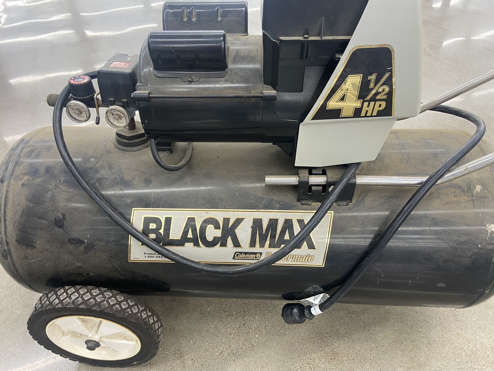 Cash only pick up in Arlington by 20 and Green Oaks Coleman Powermate Black Max 4 1/2 HP 25-gallon air compress Condition as shown