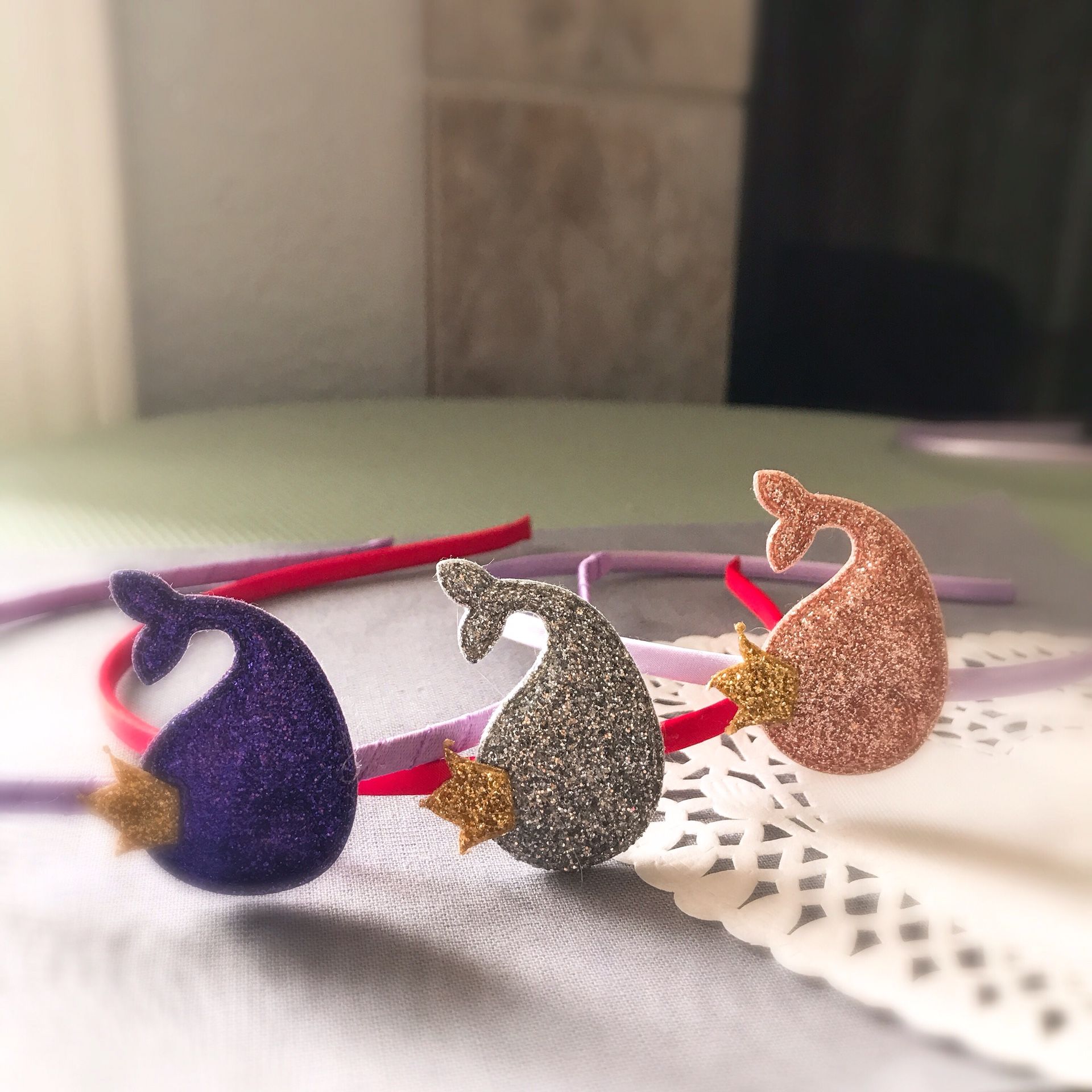Glittered whale kids headband, back to school
