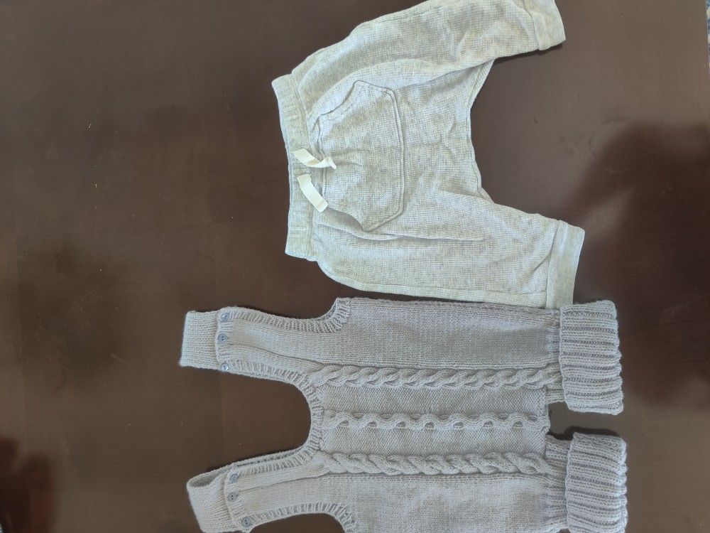 Knitted overall (worn once) and joggers. Unisex for baby 0-3 months