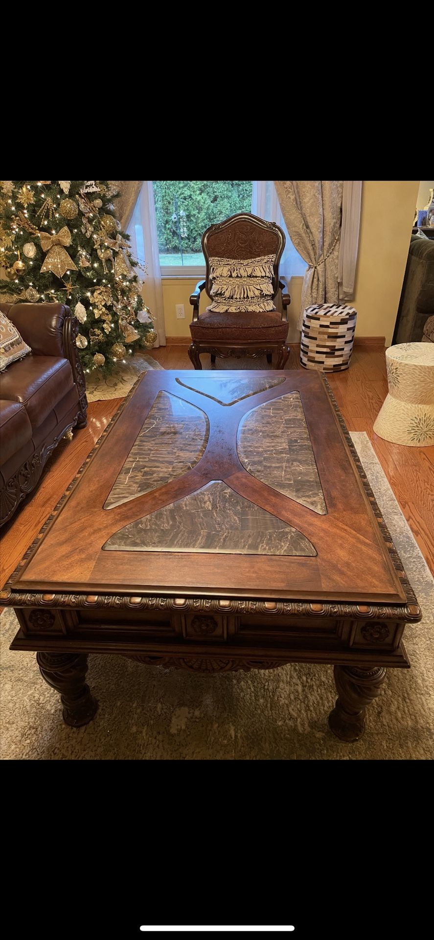 Very great coffee table made from walnut and marble top no scratches very good quality hardwood 56x32