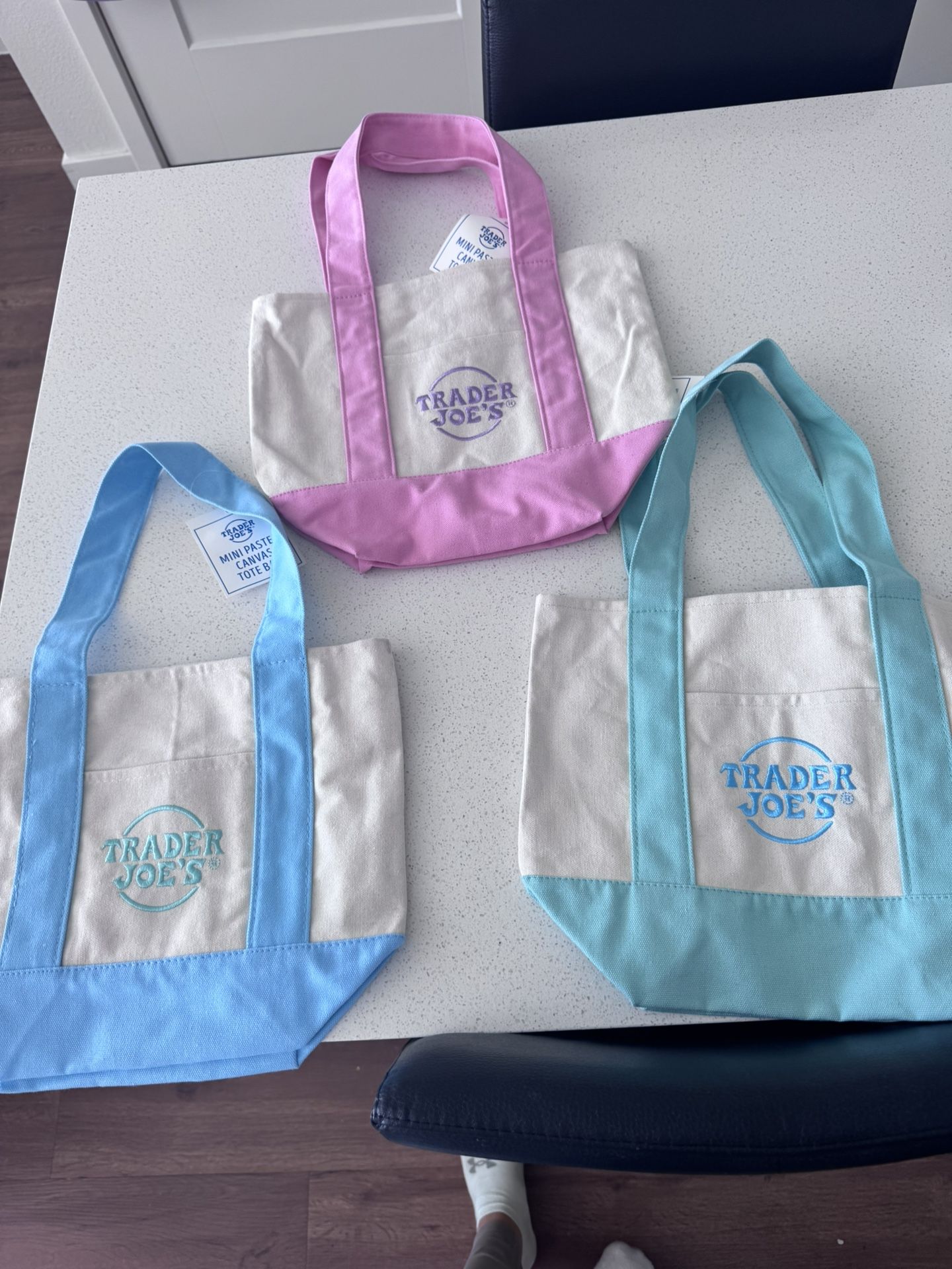 Brand new mini tote bags from Trader Joe’s $20 each Colors available -pink - blue - turquoise Pick up only - on 3rd St and Willeta