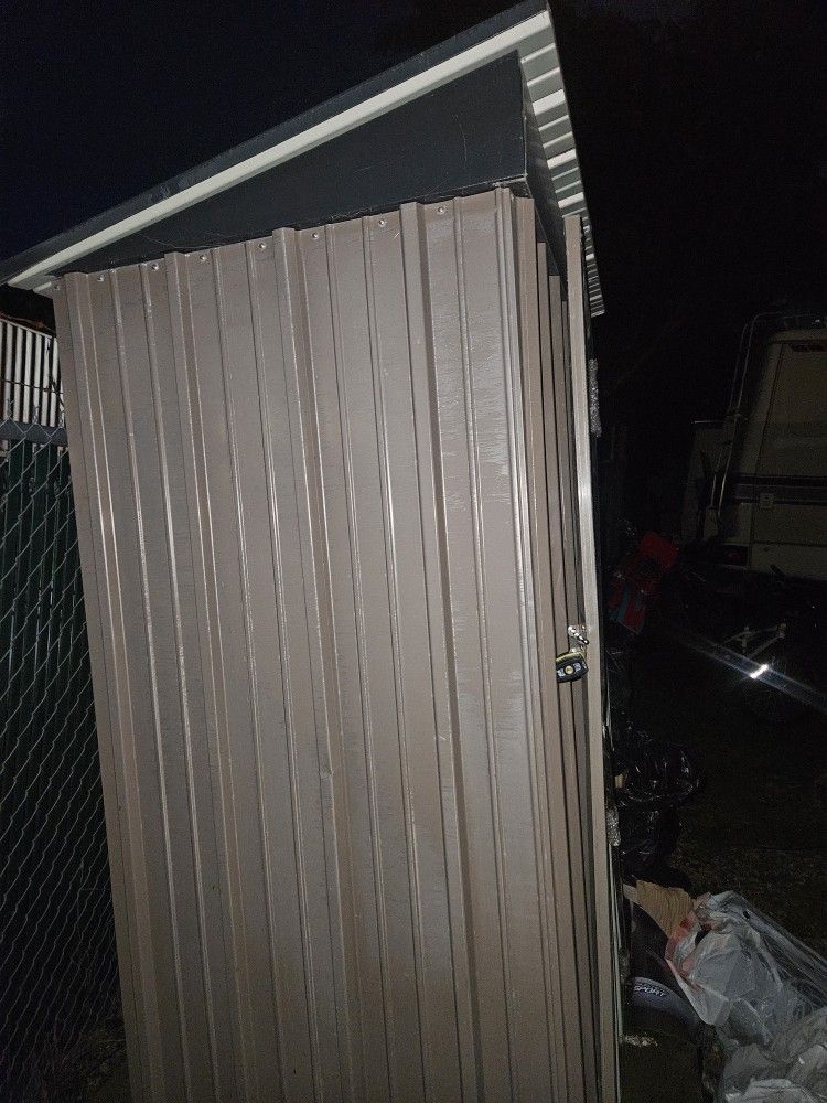 Greesum Outdoor Storage Shed 5 x 3 ft. Utility Tool Shed Metal Storage Garden Shed with Door & Lock for Patio Storage, Brown Lightly used.its attached to a base can be easily moved only asking $100 or obo