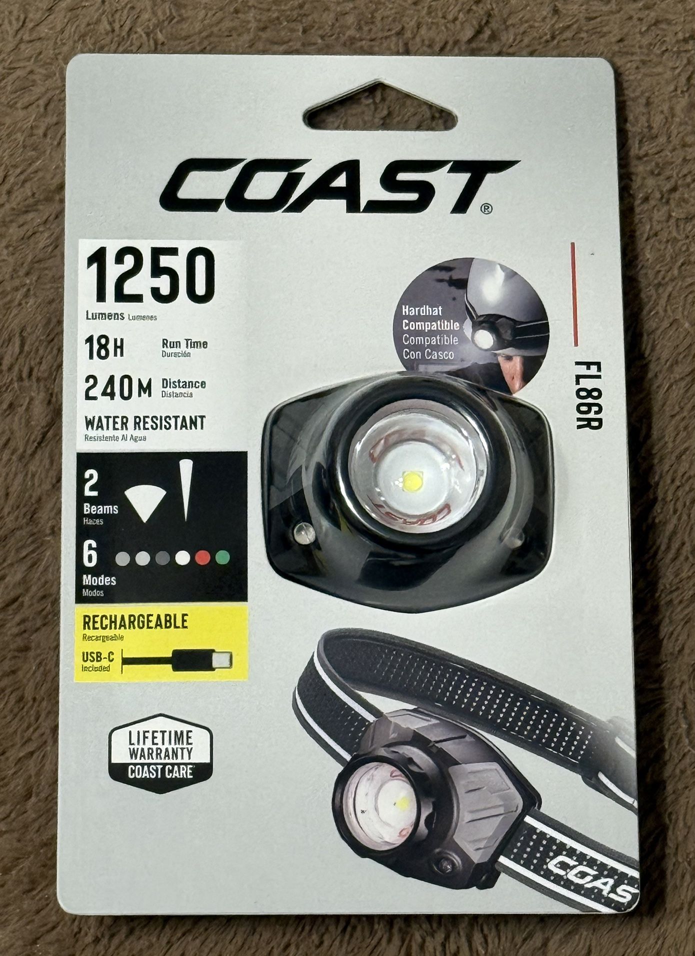 Coast FL86R 1250 Lumens LED Rechargeable Headlamp Flashlight, brand new, lifetime warranty, $25.00, price is firm, cash only, first come first serve, pick up in Debary!