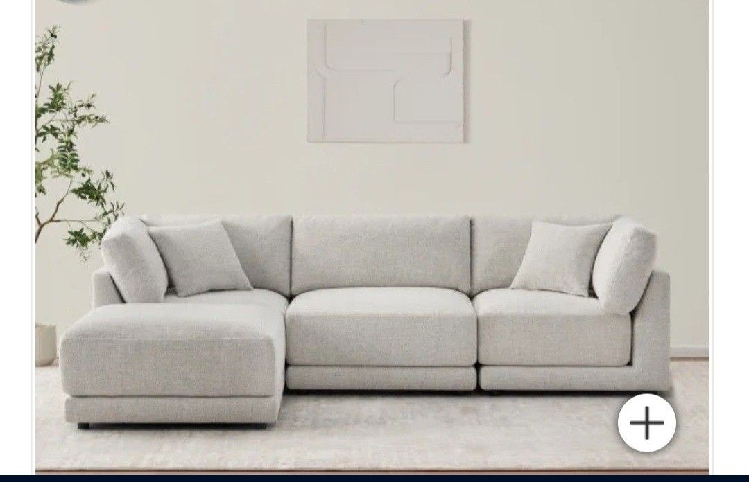 modular pieces to create a layout that fits your space seamlessly, providing adaptable flexibility.The light gray color and sleek design complement a wide range of home decor styles, from modern to classic.Double the possibilities with two Dayna sets! Create a larger, customized configuration for any space.Overall Sectional Dimensions: W x L x H75.5 in. x 112.9 in. x 33.8 in.