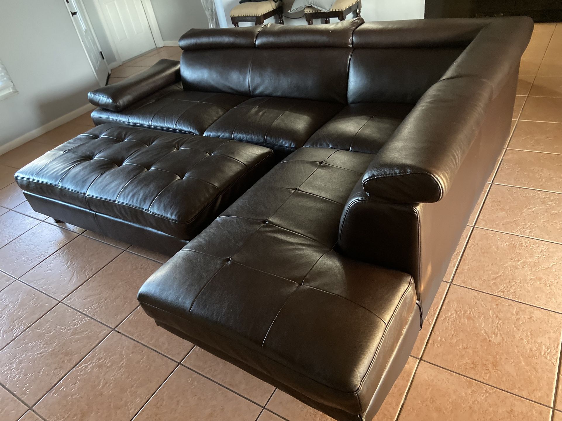 Dark brown faux leather sectional sofa couch 3 pieces: 2 couchs and ottoman All details in the pictures