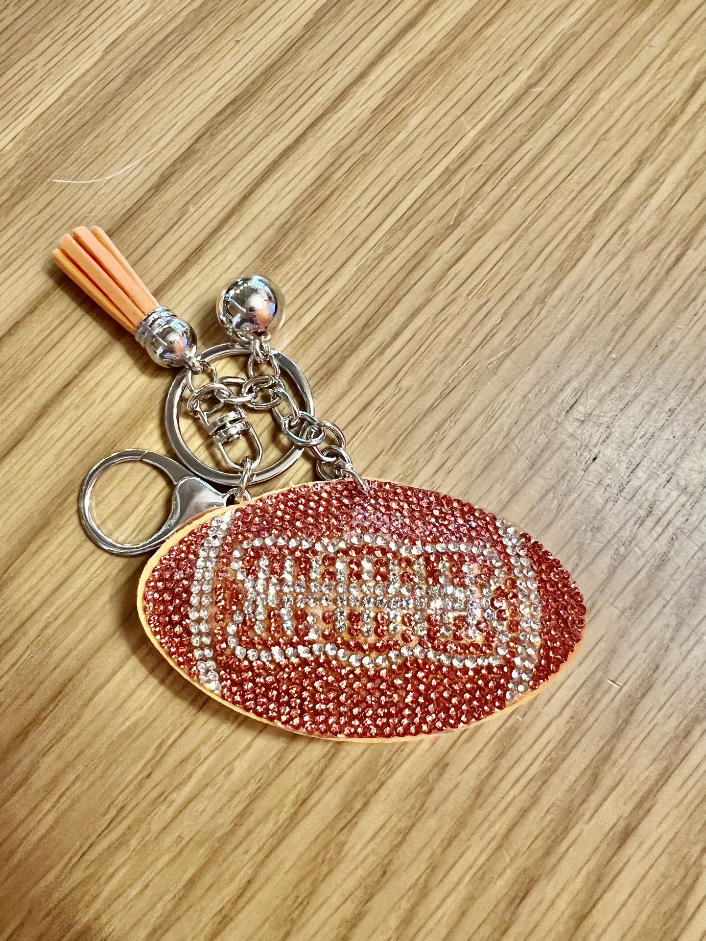 This cute little football charm can hang on your first, hold your keys, or be a nice accent for a gift. Football bling.