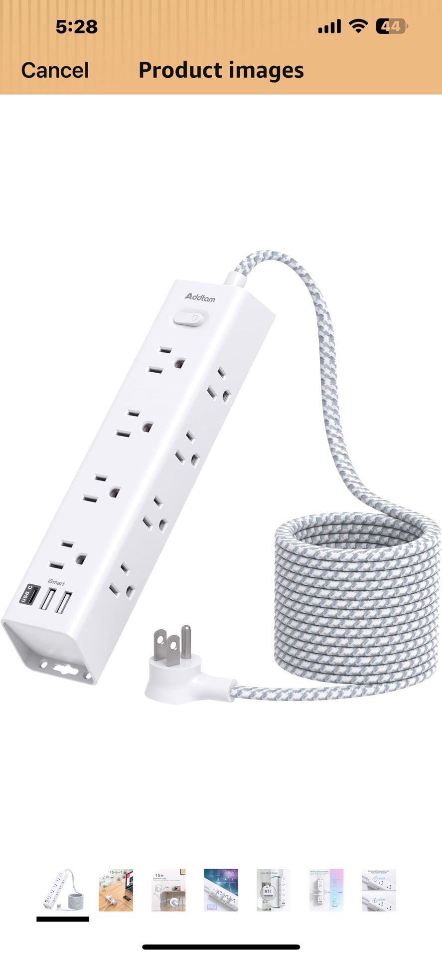 New Surge Protector Power Strip - 15 FT Extension Cord, Power Strip with 12 Widely AC Outlet 3 USB, Flat Plug Wall Mount Overload Protection, 1050J, D