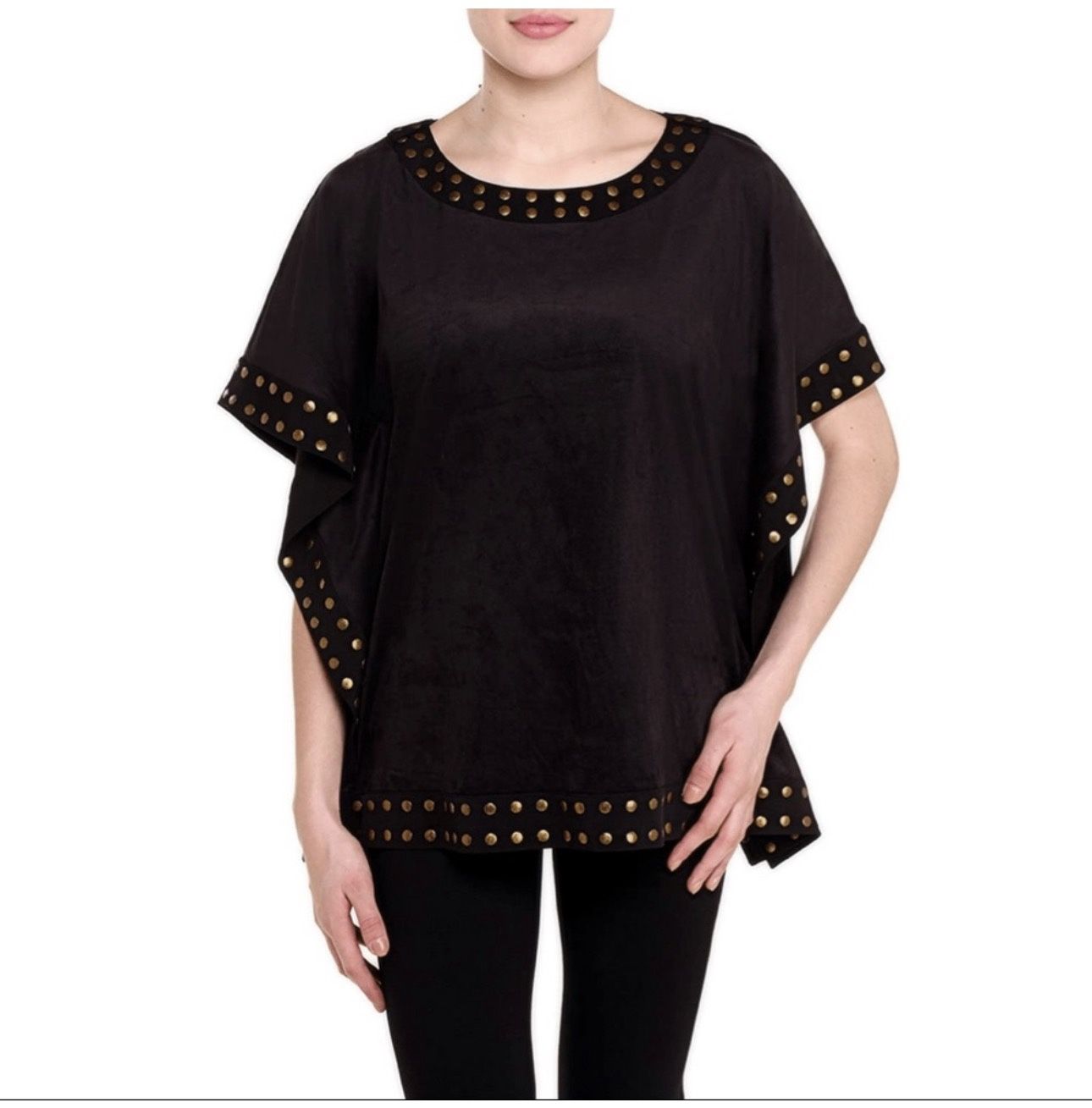 NWT brown studded faux suede poncho top by Nygard size m