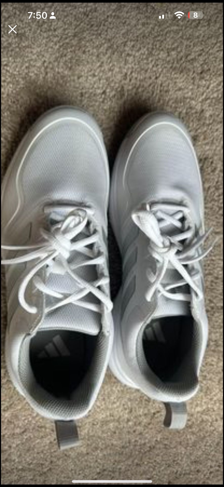 I am selling these brand new women’s Adidas golf shoes in a size 8. I will also provide a brand new pair of white laces.