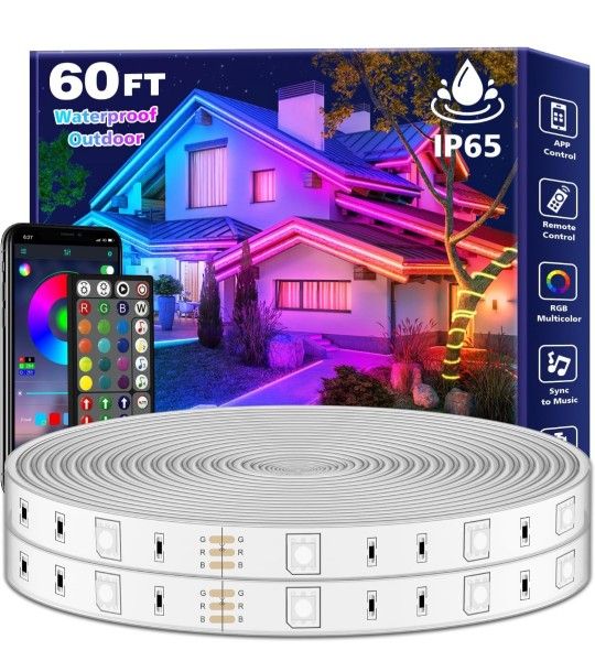 60Ft Outdoor Waterproof LED Strip Lights,Music Sync RGB IP65 Led Lights with App Control and Remote,Color Changing Waterproof Led Rope Lights for Outd