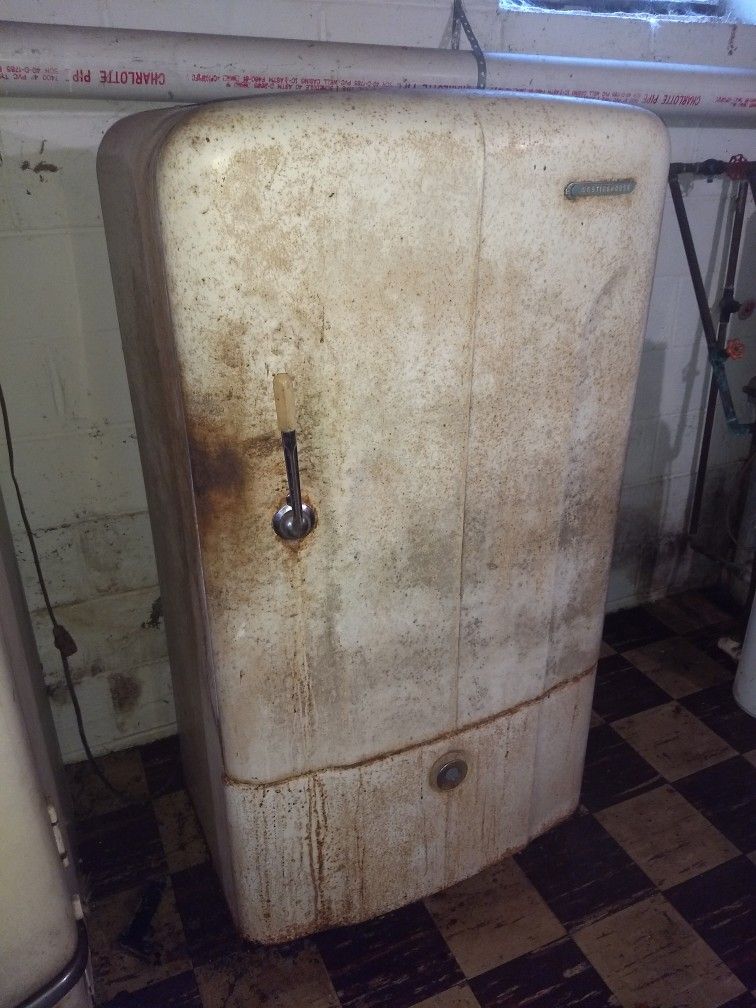 Refrigerator actually works but will be perfect for a restoration to given fabulous antique touch to a retro kitchen. .1947 model.