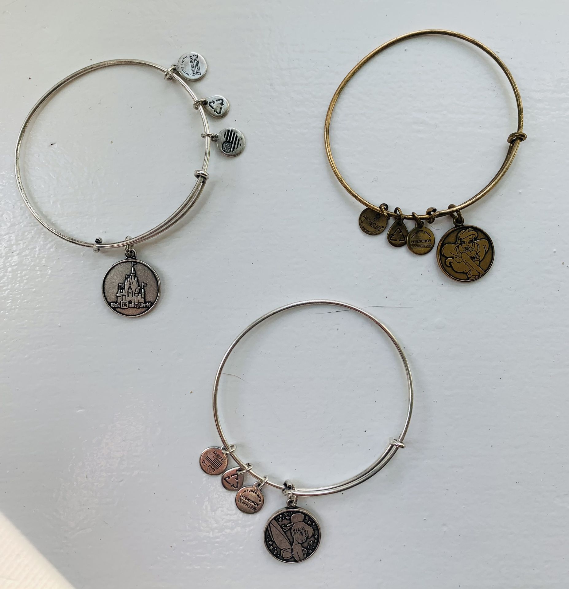 Alex and Ani Disney 3pc: Ariel, Tinkerbell, Castle - Wire Bangle Charm Bracelets