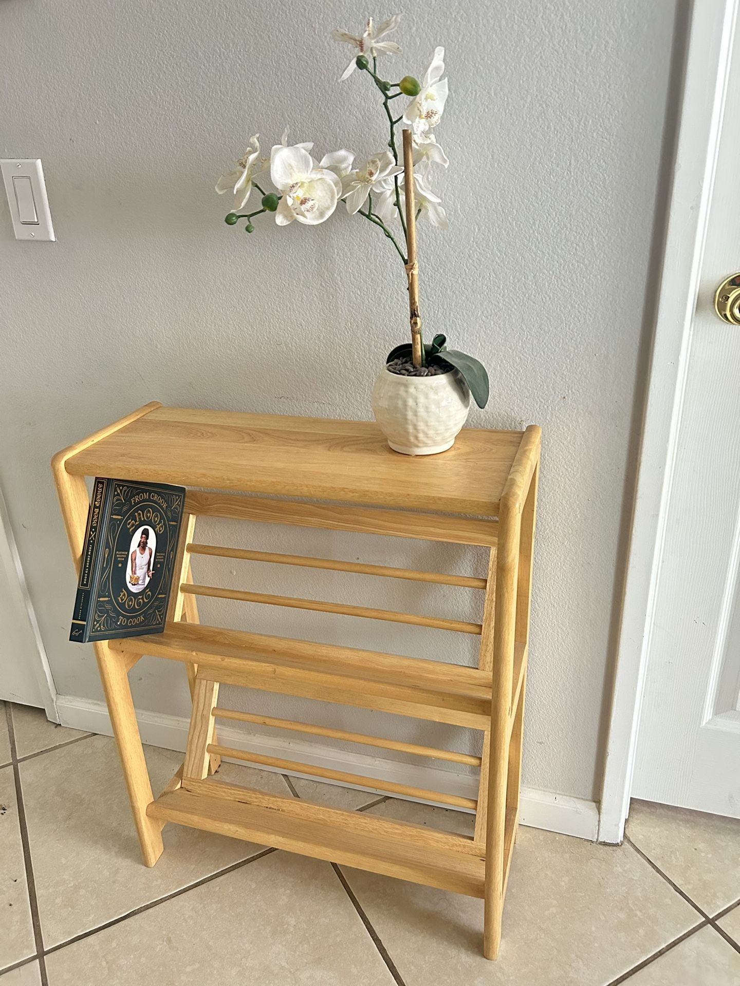 Short Wooden Book Shelf / Rack Measures : 30” x 24” x 9.5” Must pick up in west Murrieta