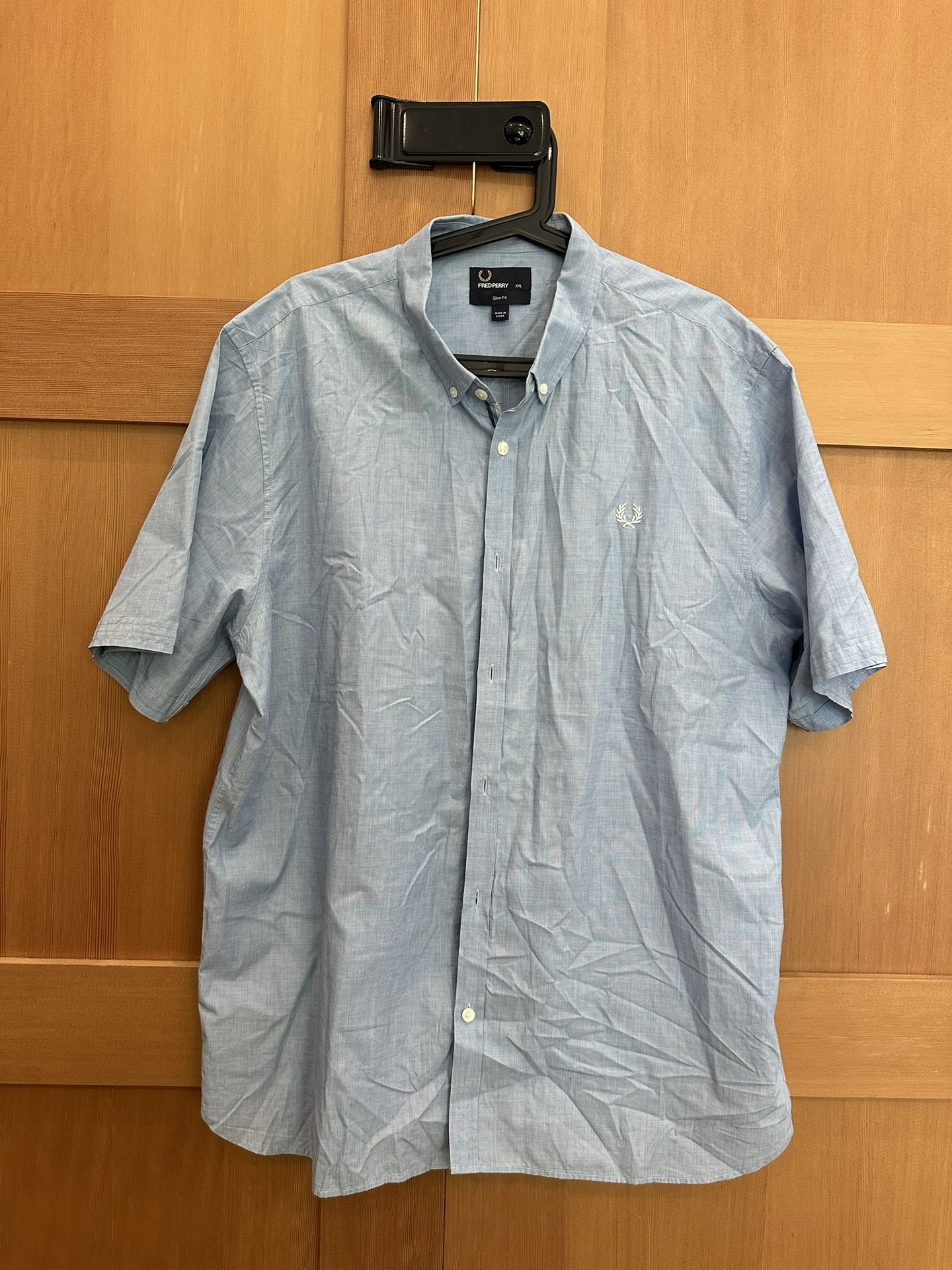 Excellent condition blue Fred Perry Oxford shirt sleeve button down shirt -