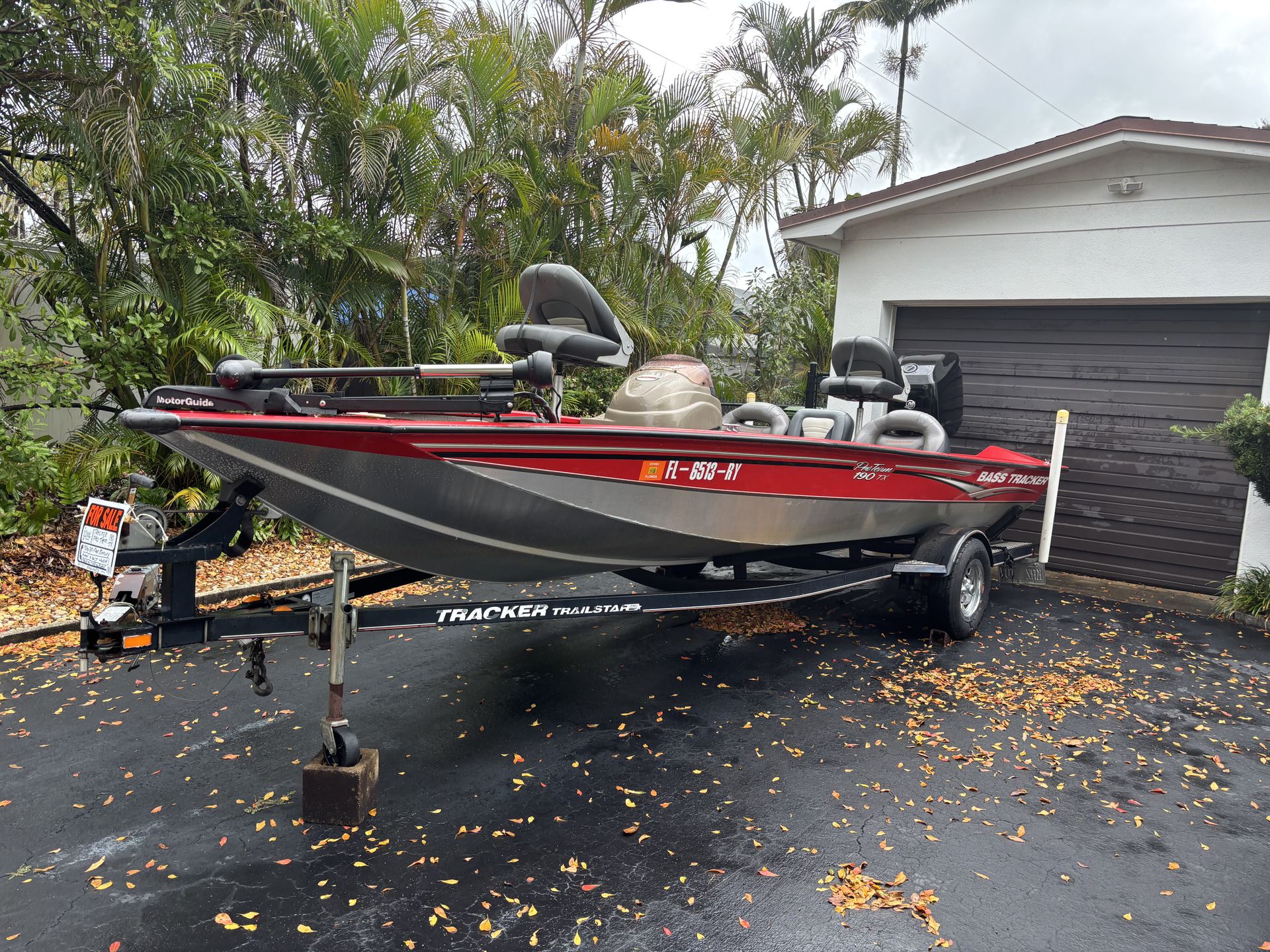 90 hp Mercury Opti-Max engine. Very low hours on engine. Drive-on trailer with hydraulic brakes and swing away tongue(for garage storage). Newer Hummingbird depth gauge and Motorguide trolling motor. Large live well , built in cooler Always covered, never in salt water, used non-ethanol fuel only IN GOOD CONDITION Will consider reasonable offer NO LOWBALLS PLEASE KEYWORDS: boats, power boats, Bass boat,tracker,bass tracker,fishing,freshwater,aluminum boat,outboard,Everglades