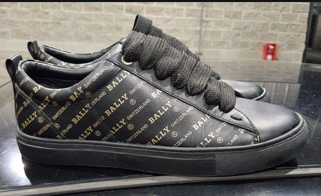 Pick Up in Kent Washington Serious Offers Only Please I Prefer Cash Only Please No Low Balling Shoes are in excellent condition they where worn once No Box MAKE ME AN OFFER Bally Helmer Metallic Gold Logo All Over Print Leather Low Top Sneaker Shoes. Men Size 7E or 8D US Black Calf Leather Colorway Metallic Gold Logo. Soft Leather. Very Comfortable. Bally Switzerland. MSRP: $500 after tax.