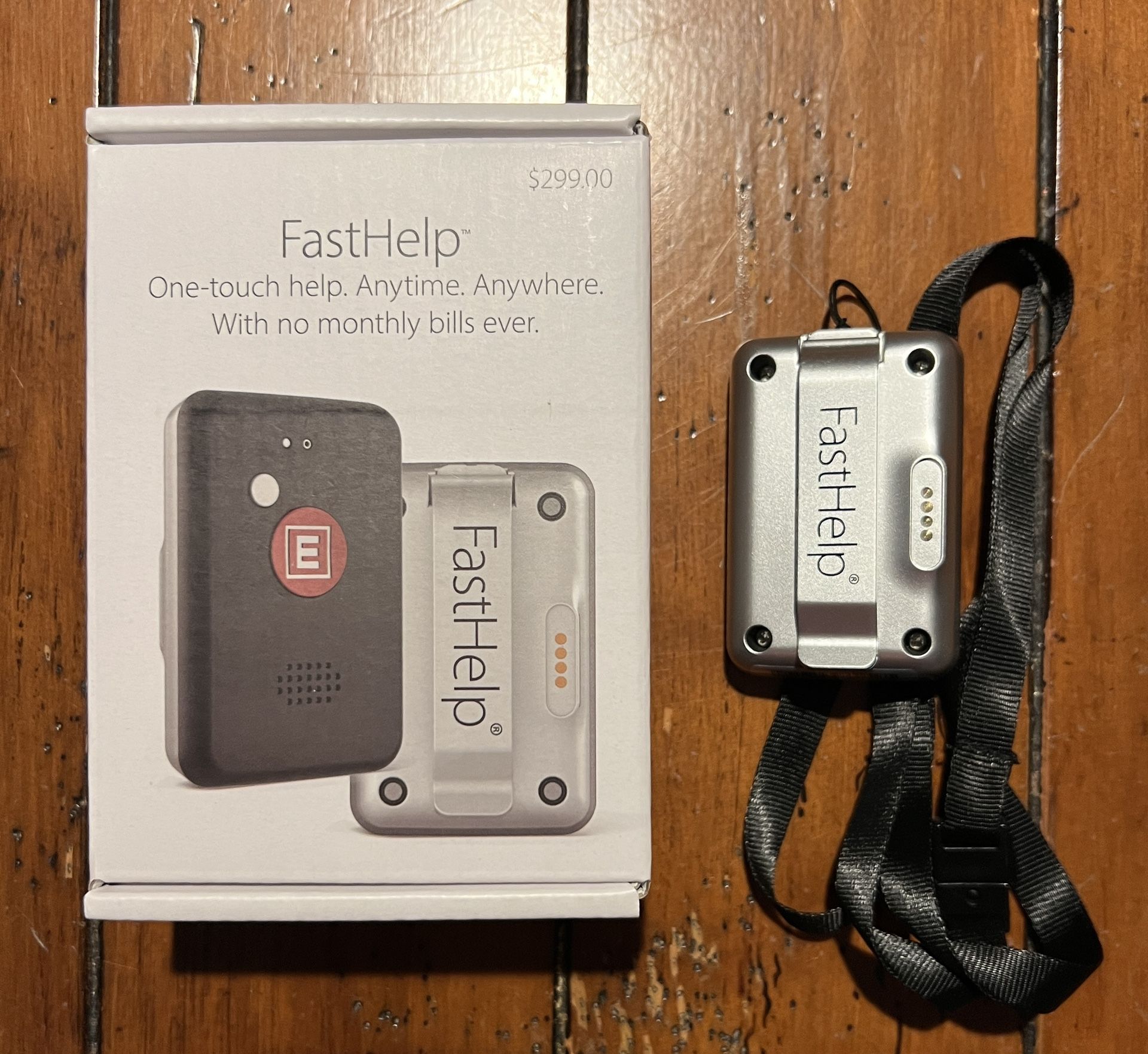 This is a lanyard worn around the neck. One touch help that is great for an elderly parent. No monthly bills.