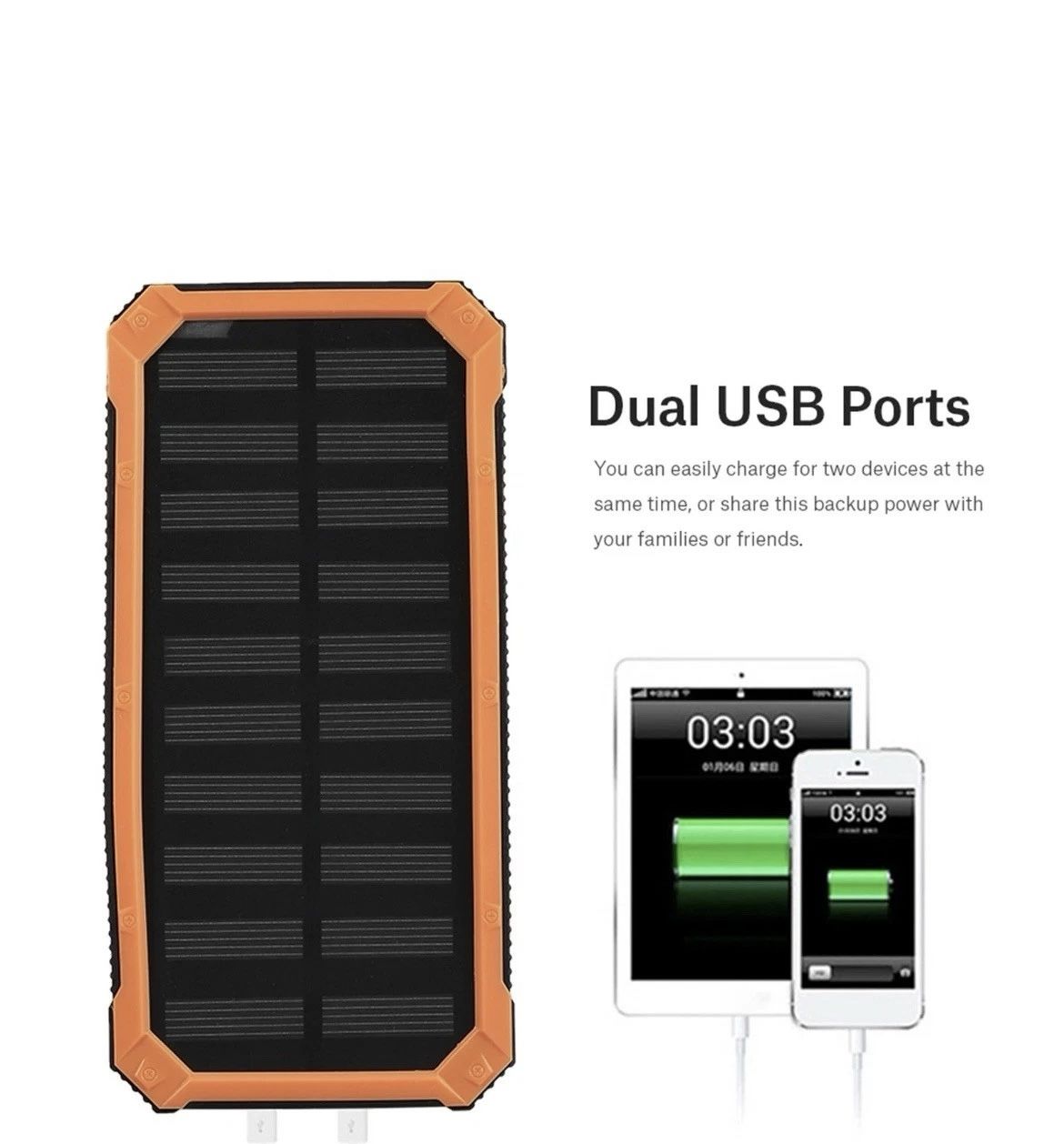 Super 20000mAh USB Portable Charger Solar Power Bank for Cell Phone Orange Gift