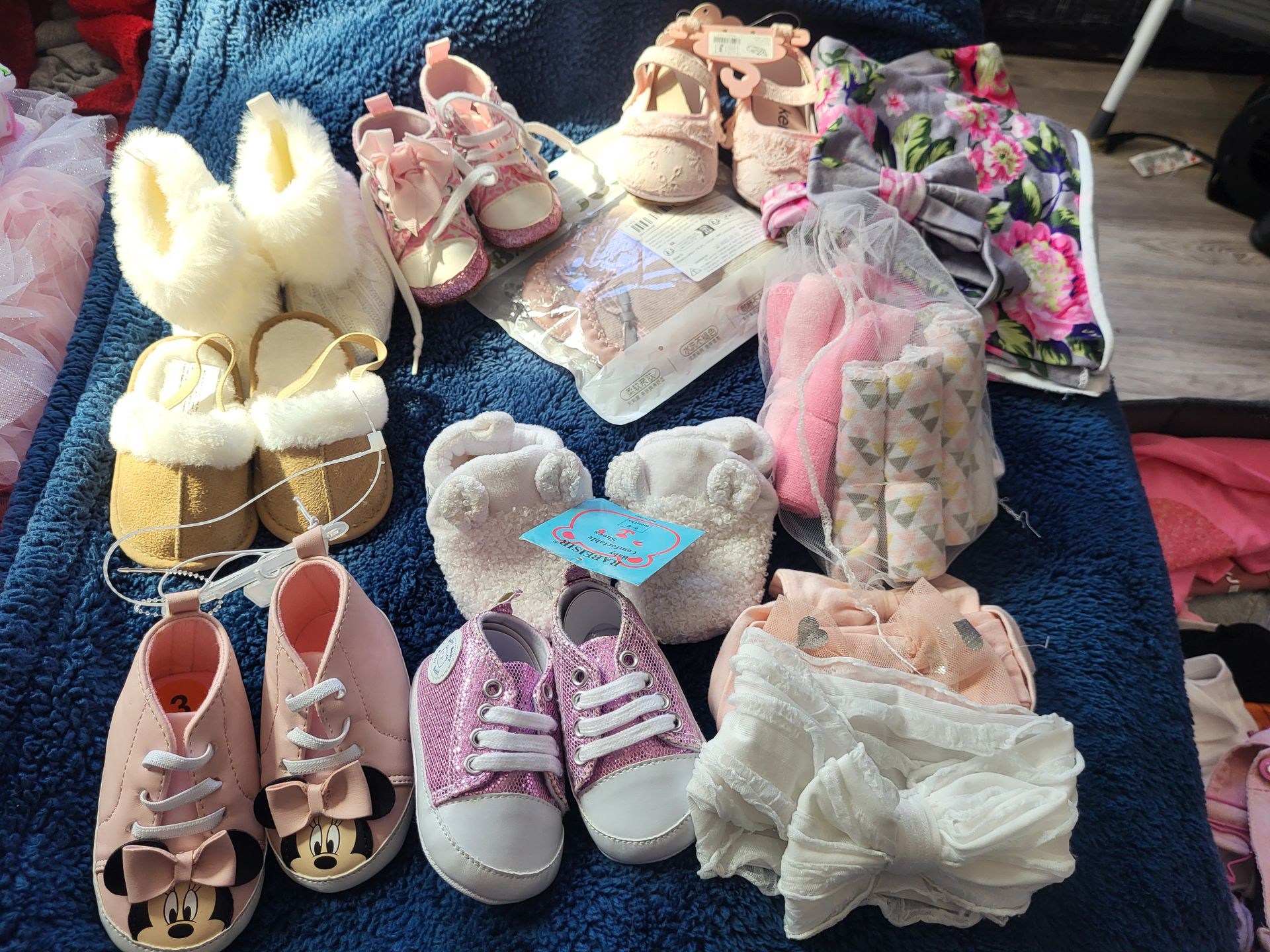 Bag a baby girls clothing 6 to 12 months gently used some items are new lots of headbands new shoes dresses overall pants and sets washcloths and bibs as well