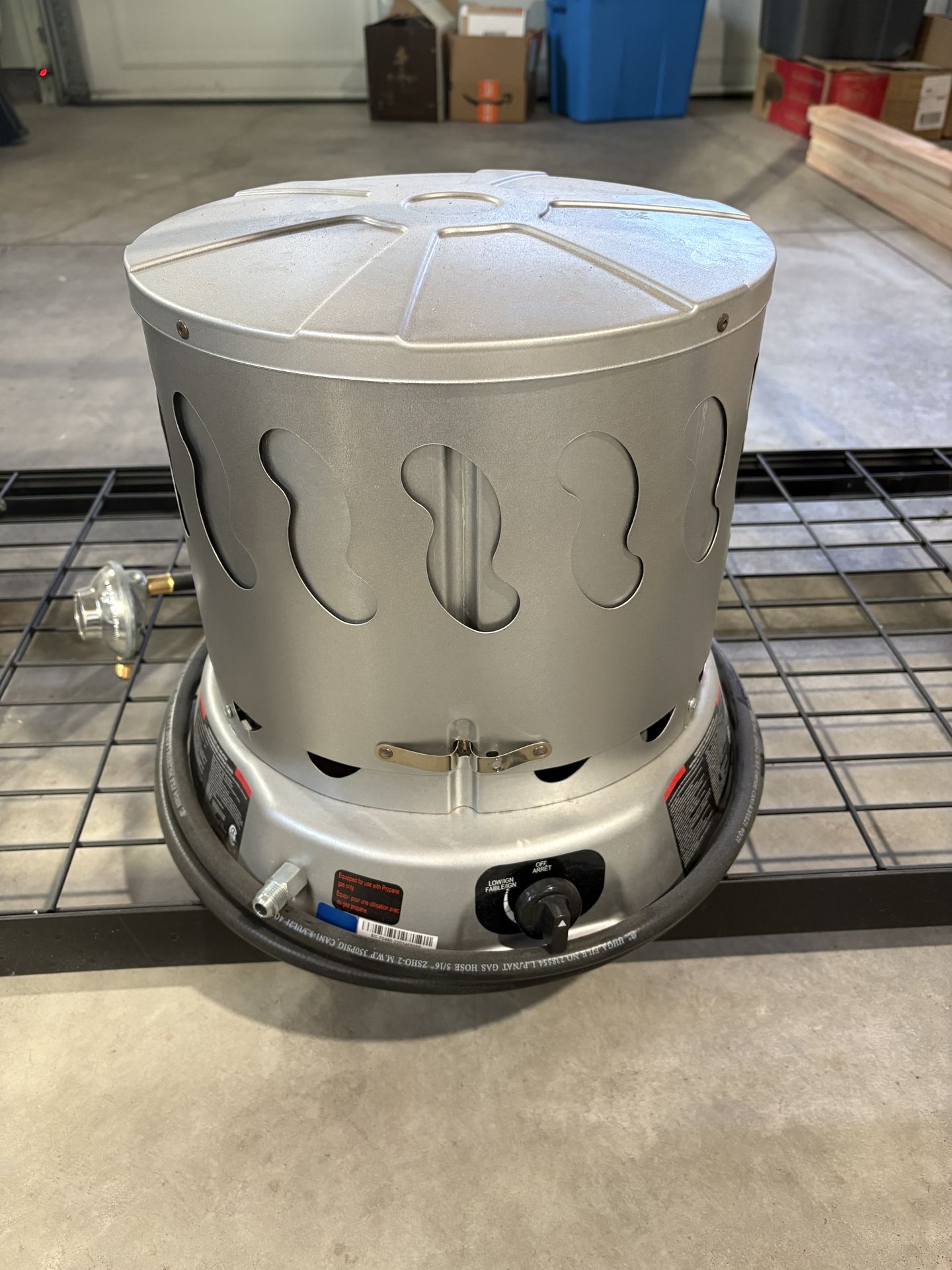 Portable heater that connects to your propane tank. Runs about $90-120 brand new. I’ve only used it once or twice.