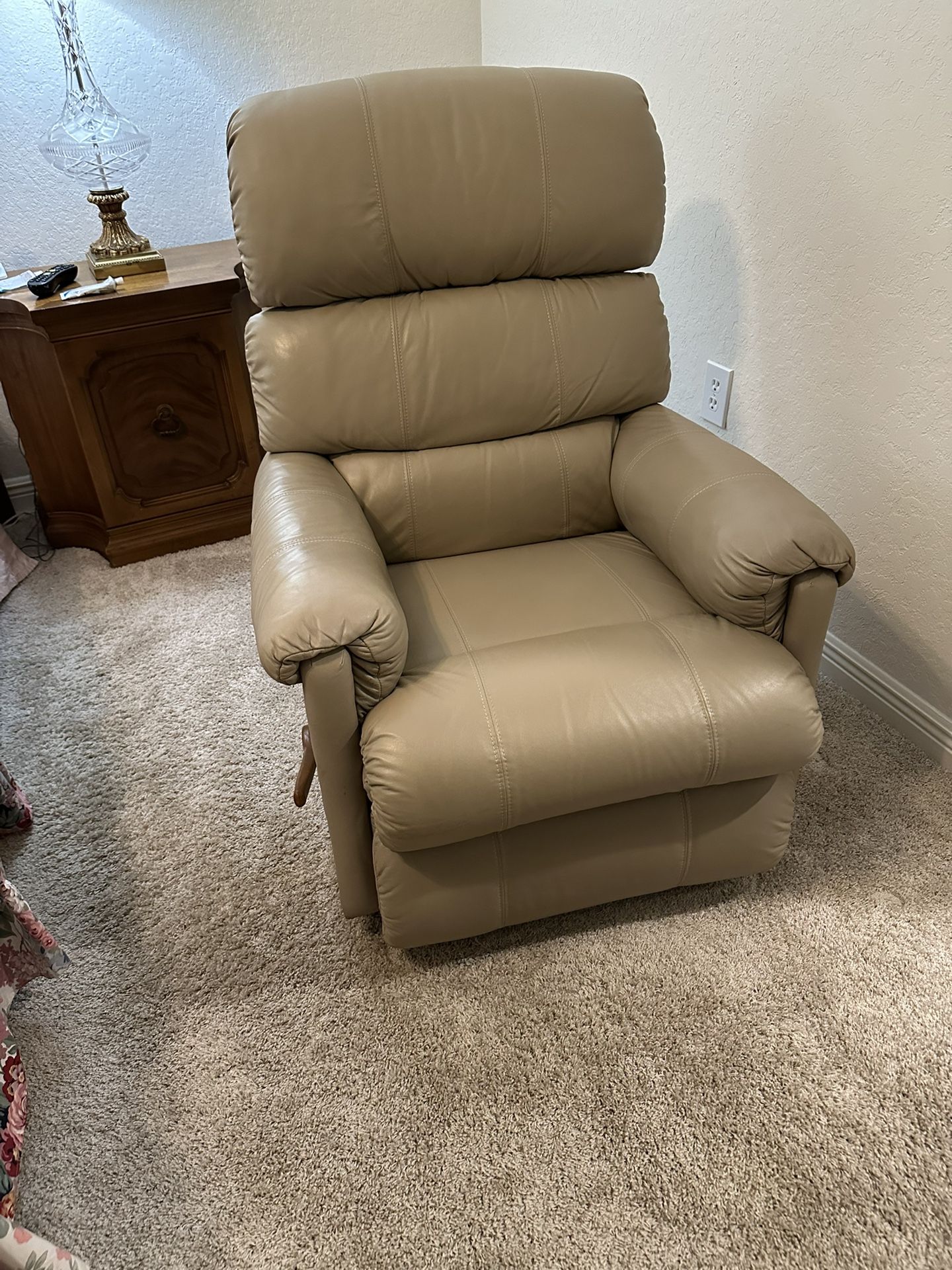 Manual rocking recliner. Excellent Condition! Hardly used. Great support & very comfortable. Originaly paid: $1300 ——- Sillón reclinable mecedor manual. ¡En excelente condición! Casi sin uso. Ofrece gran soporte y es muy cómodo. Precio original: $1,300 ⸻ Chèz recliner manyèl ki balanse. Nan ekselan kondisyon! Prèske pa janm itilize. Li bay bon sipò epi li trè konfòtab. Pri orijinal: $1,300