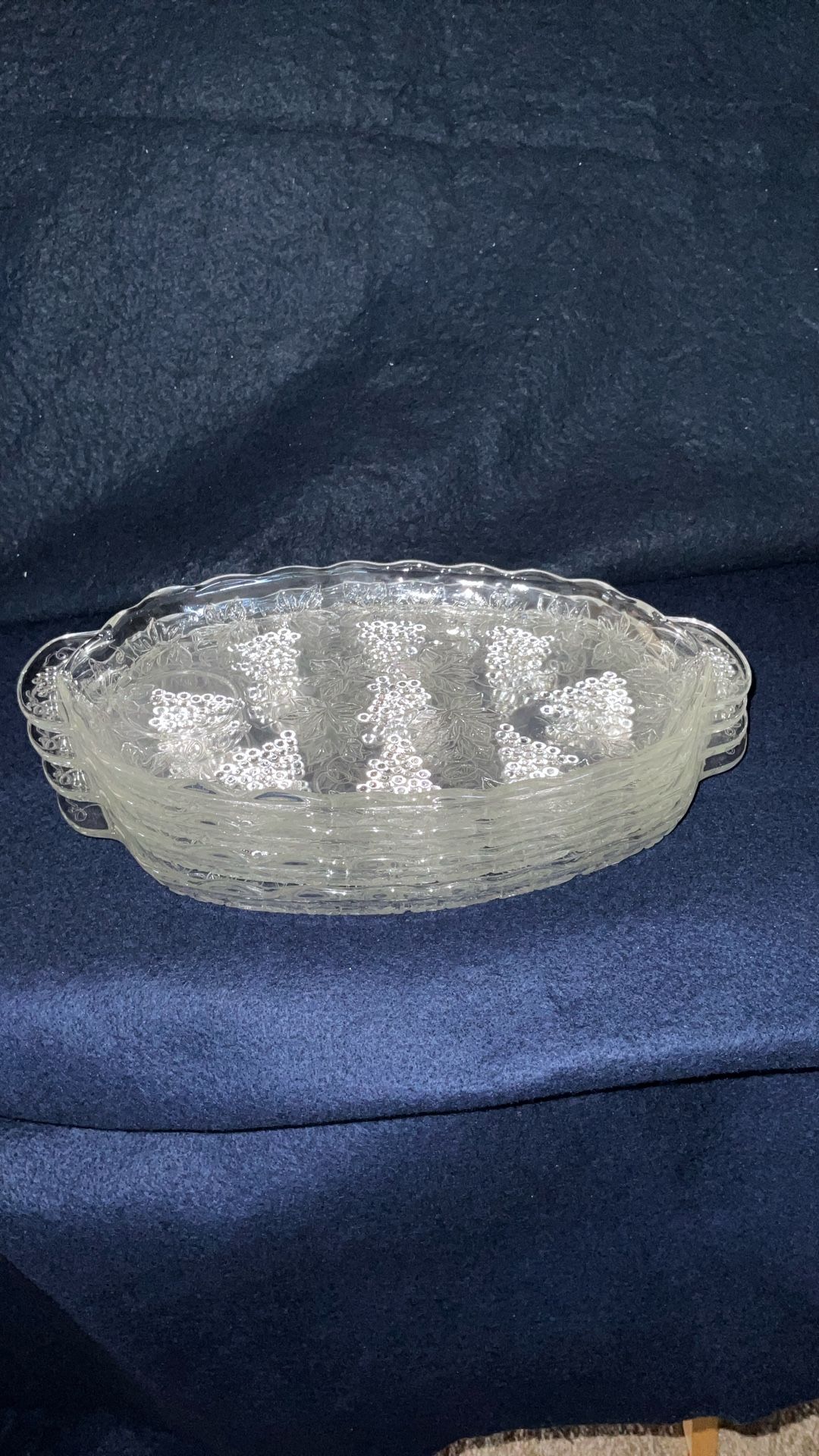 Set Of 4 50’s 60’s Anchor Hocking Grape & Vine Pattern Serva-Snack Trays
