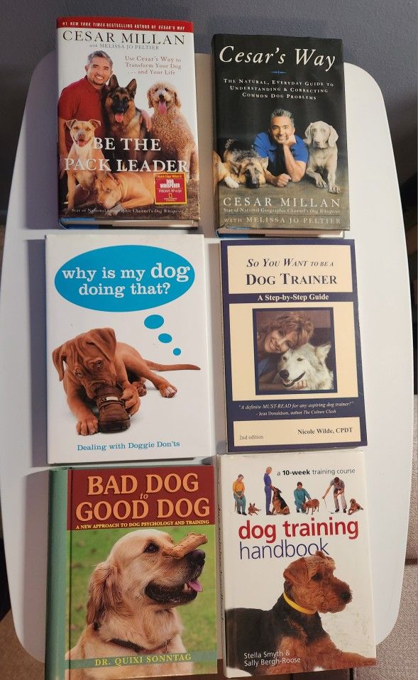Six notable dog training books. All in very good condition. Price listed is for all six books, $2 each if sold separately.