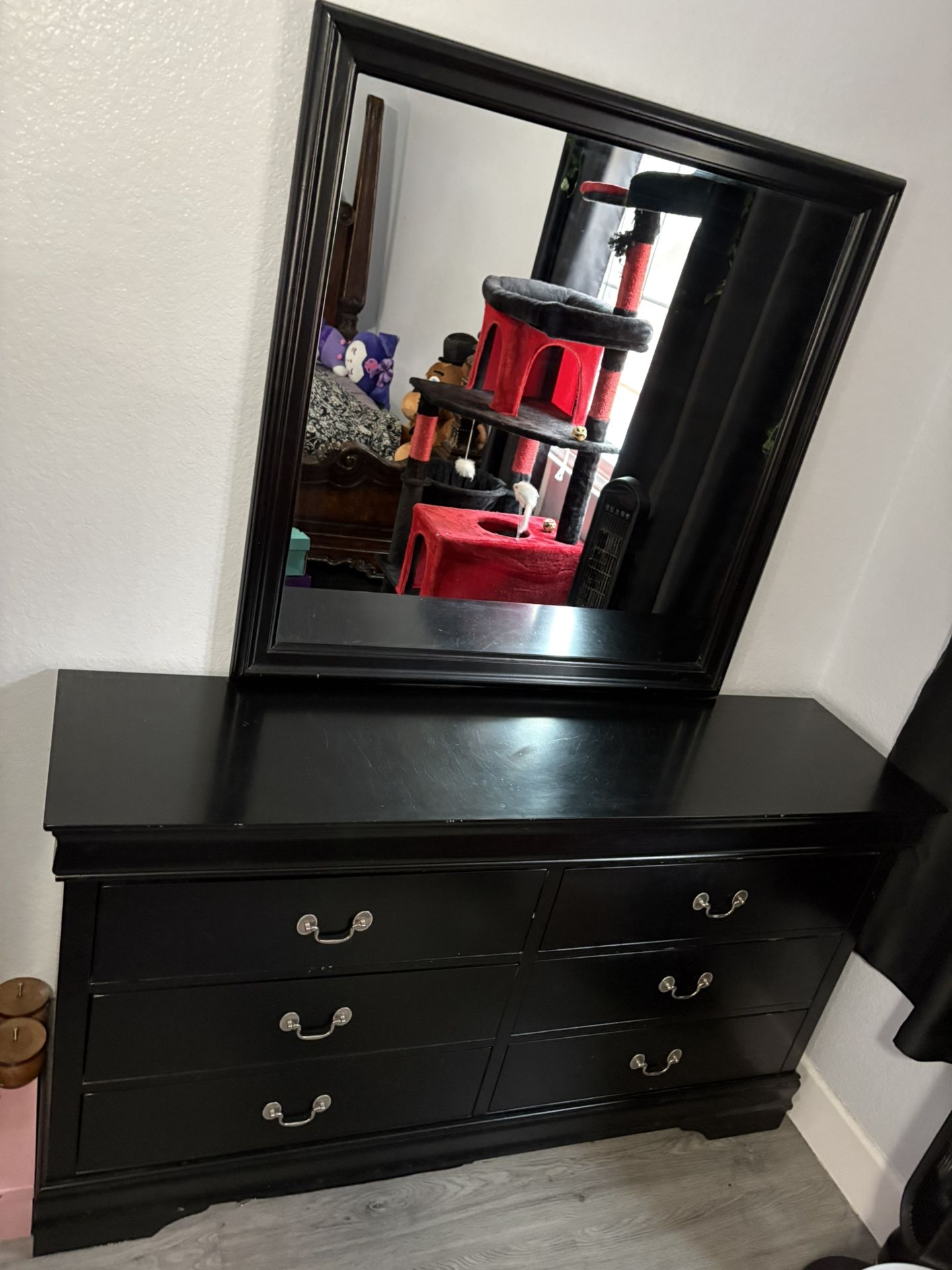 Sturdy black 6-drawer dresser with attached large mirror All drawers work smoothly No missing handles or pieces Used, but in very good condition $150 OBO, shoot me an offer! Pick up only
