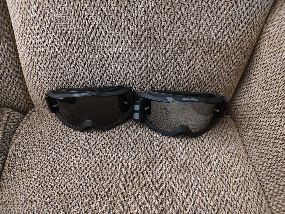 MOTORCYCLE GOGGLES. MIRROR AND BLACK LENS. ADJUSTABLE STRAP. $20 EACH. NEW. PICKUP ONLY