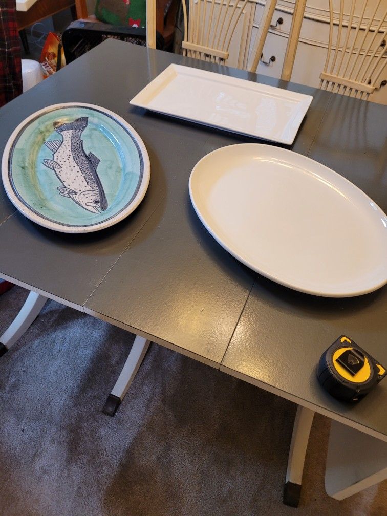 3 platters perfect for charcuterie, dinner, serving Turkey for Thanksgiving, or a variety of desserts for a kid's fun day! These platters have seen it all! The fish platter is a one-of-a-kind from Sally Christopher at the Pike Place Market! Get all 3 for $10 Our downsizing continues as we prepare to move. Pickup in Lacey near College and Yelm.
