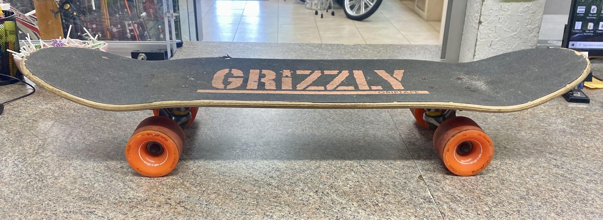 32-inch skateboard featuring Grizzly Griptape. 32x8 inches Ask if you have questions Used condition all sides dents and scratches. Check all pictures