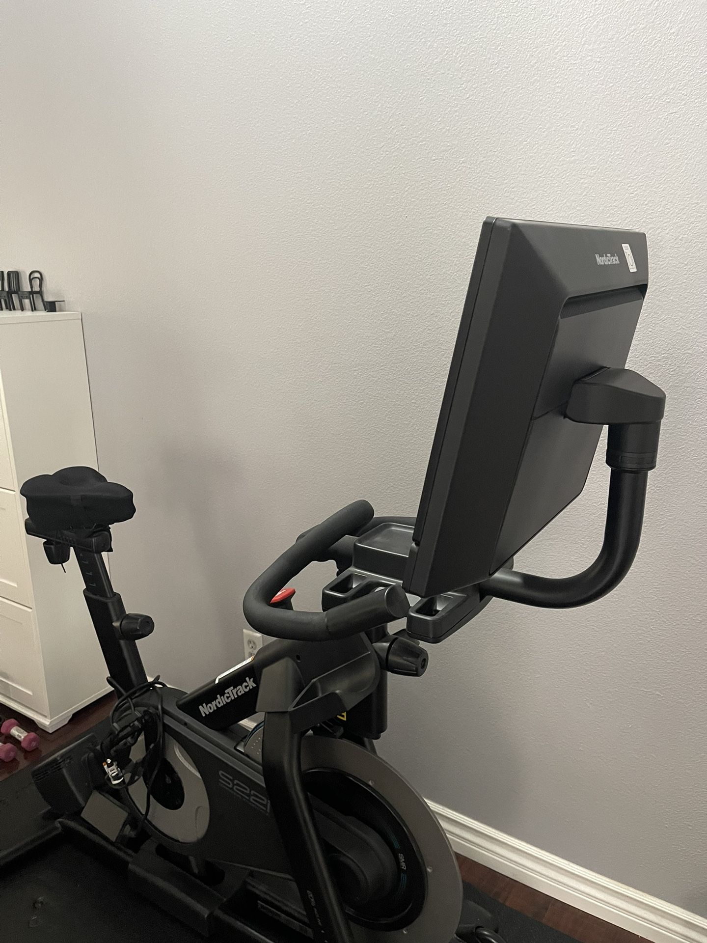 Stationary bike in great condition. Used it a couple of times. Everything works, comes with seat cover and small weights. Power incline, fan, and wheels to move around