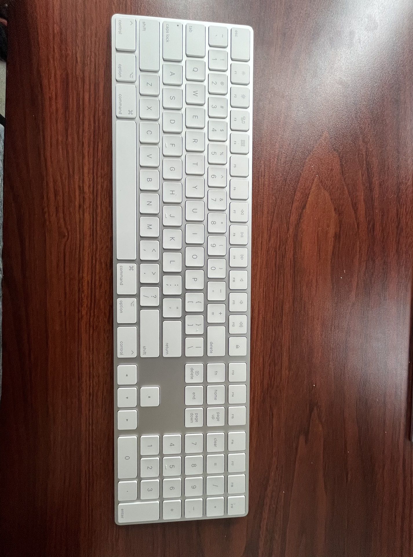 Only used couple of times. In Great condition Magic Keyboard with Numeric Keypad features an extended layout, with document navigation controls for quick scrolling and full-size arrow keys for gaming. A scissor mechanism beneath each key allows for increased stability, while optimized key travel and a low profile provide a comfortable and precise typing experience.