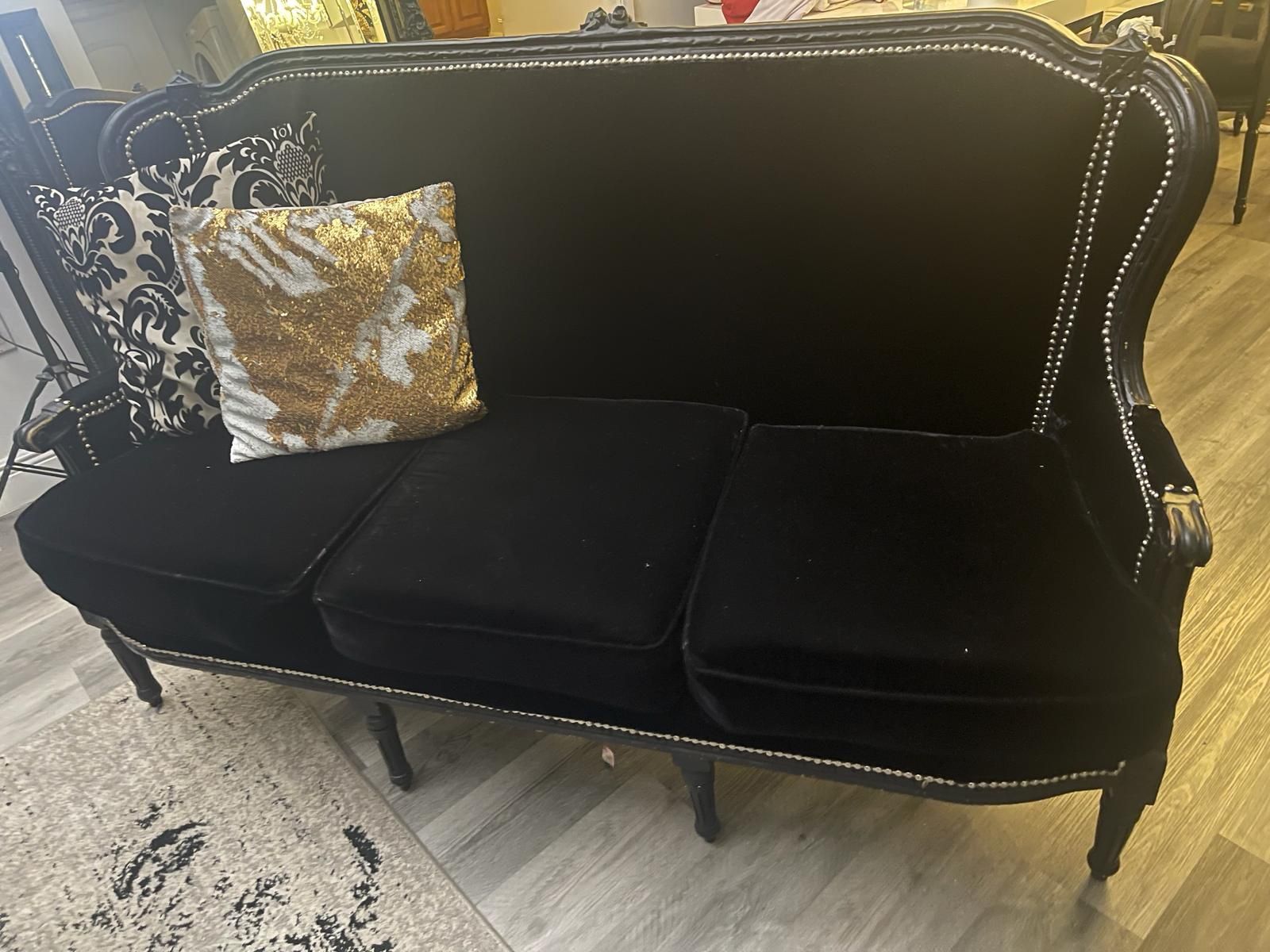 Sofa Black Velvet $150