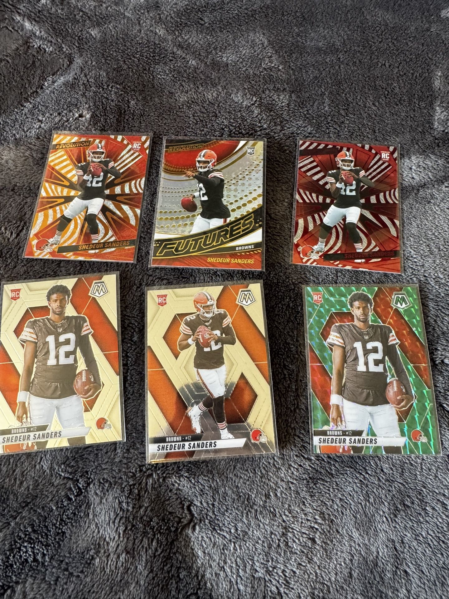 NFL 2025 Rookie cards Mosaic/ Revolution Mix. Many Sheduer,skattebo,dart Cards All Sleeved Perfect Condition.