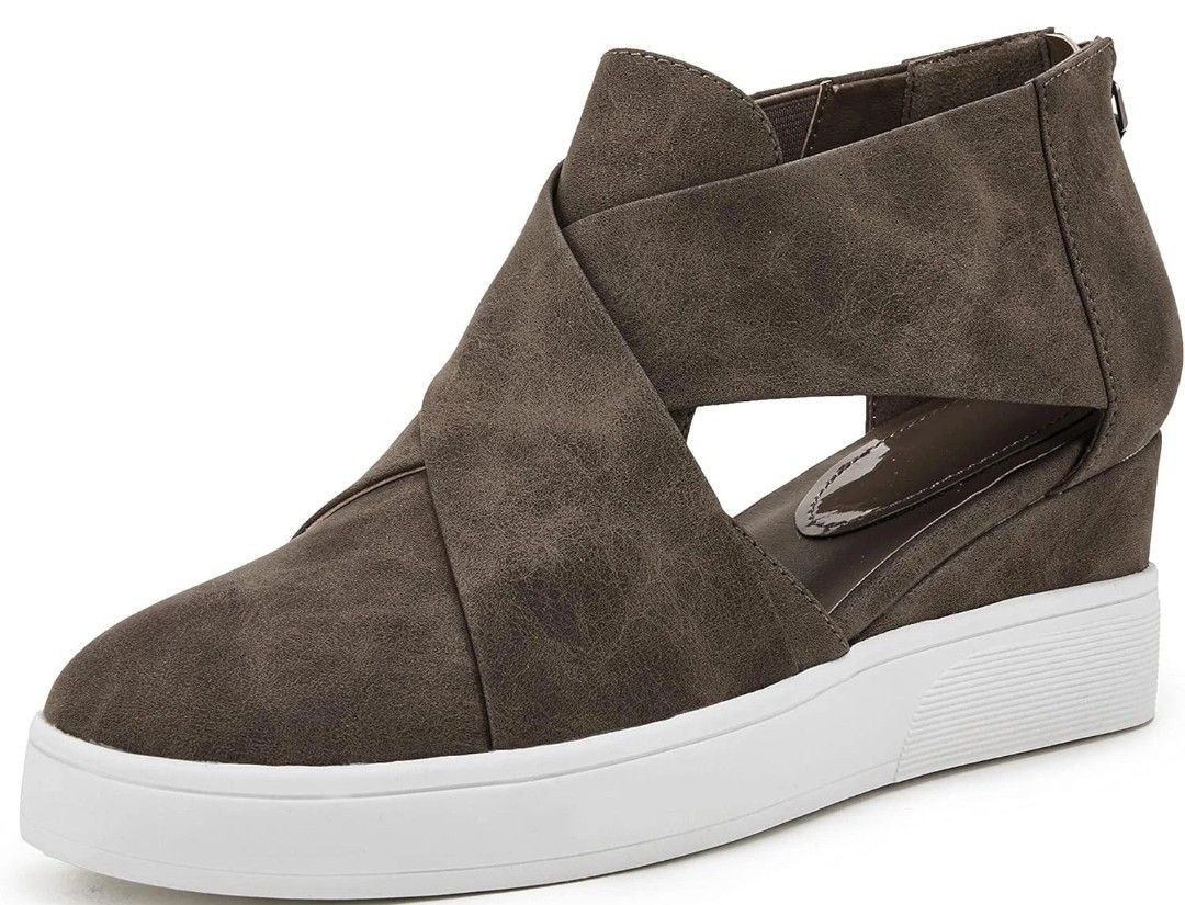 LAICIGO Womens Platform Wedges Fashion Sneakers Cut Out Criss Cross Strap Wedges Size 6.5