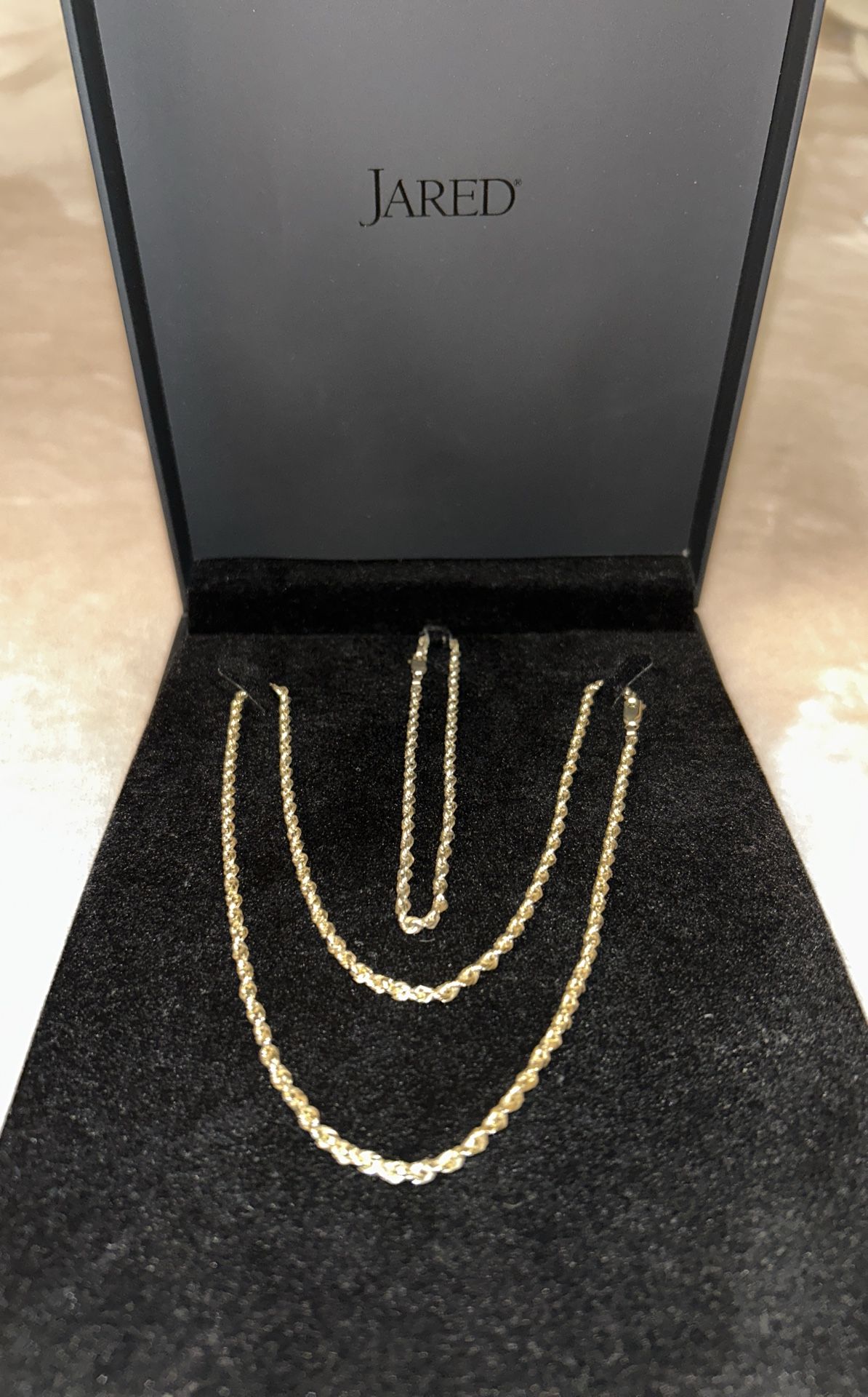 20” 14 K 2mm necklace 8” 14k 2mm bracelet He went to Jared
