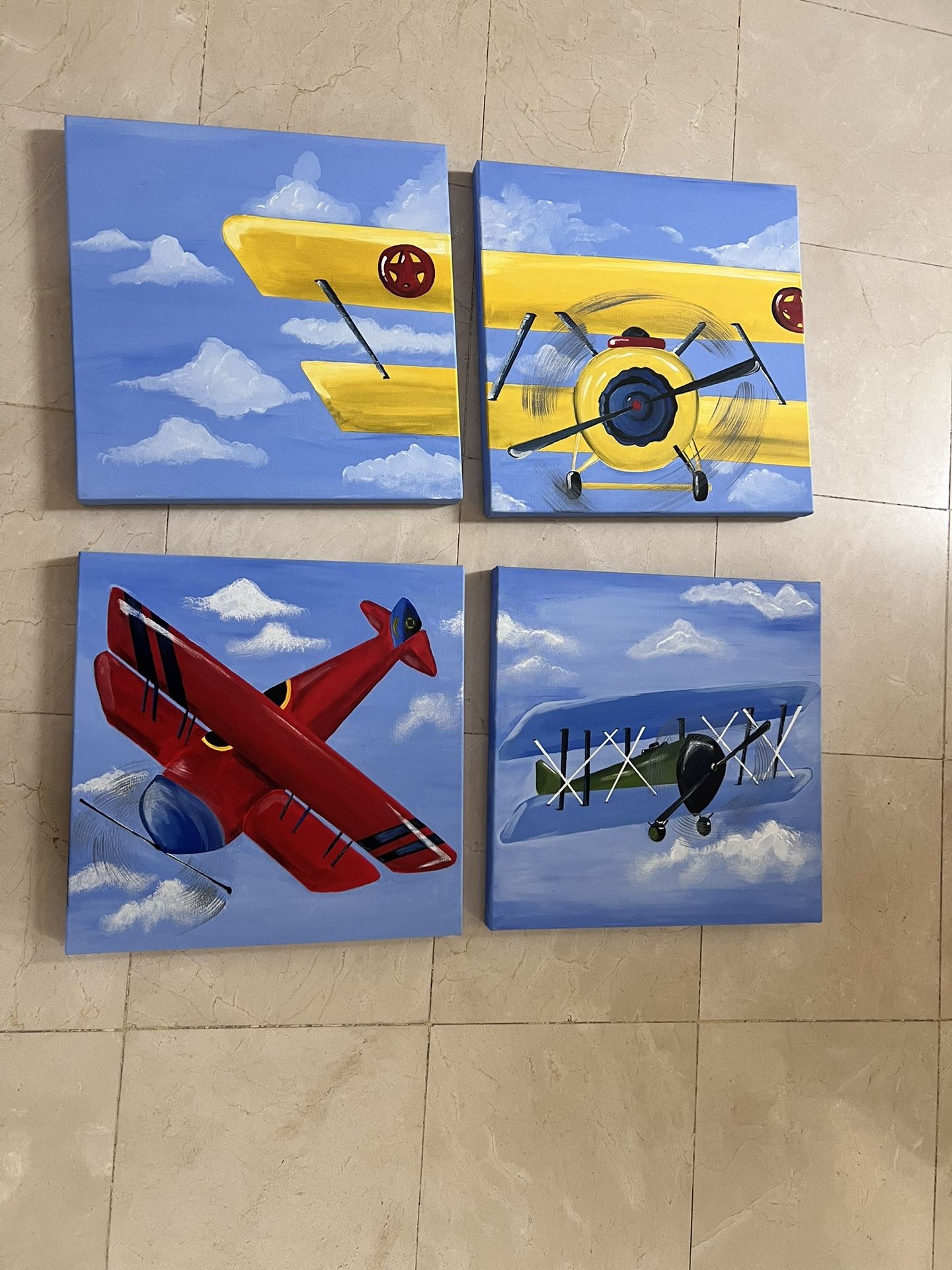 Hand painted airplane art 20 x 20 each - 4 pieces