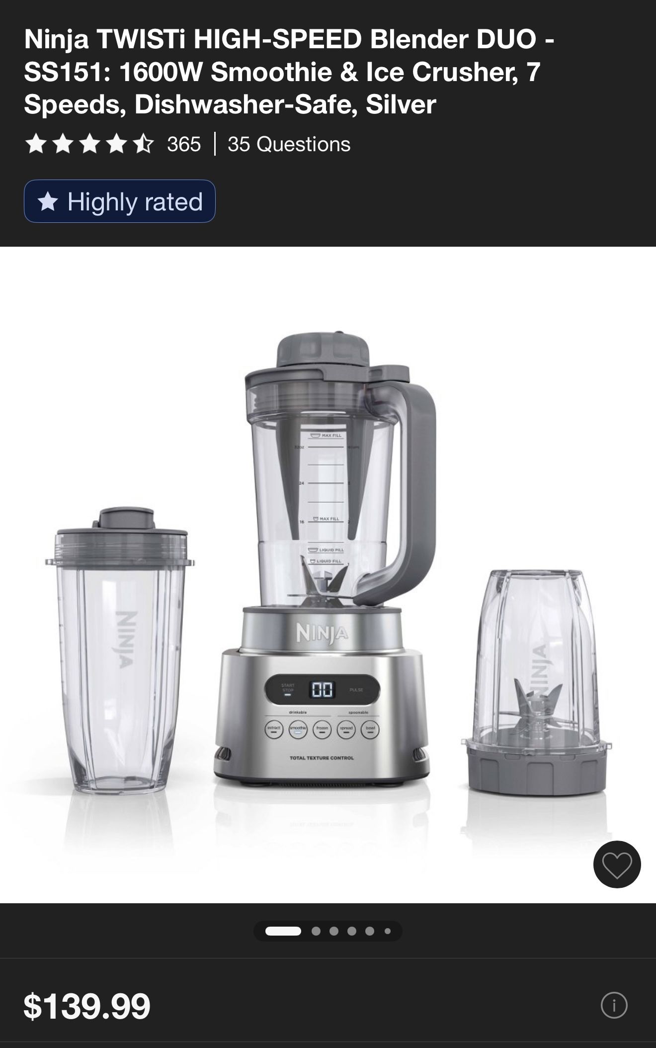 Ninja TWISTi HIGH-SPEED Blender DUO - SS151: 1600W Smoothie & Ice Crusher, 7 Speeds, Dishwasher-Safe, Silver Pickup ! Original price is $140 Asking $100 Brand new sealed