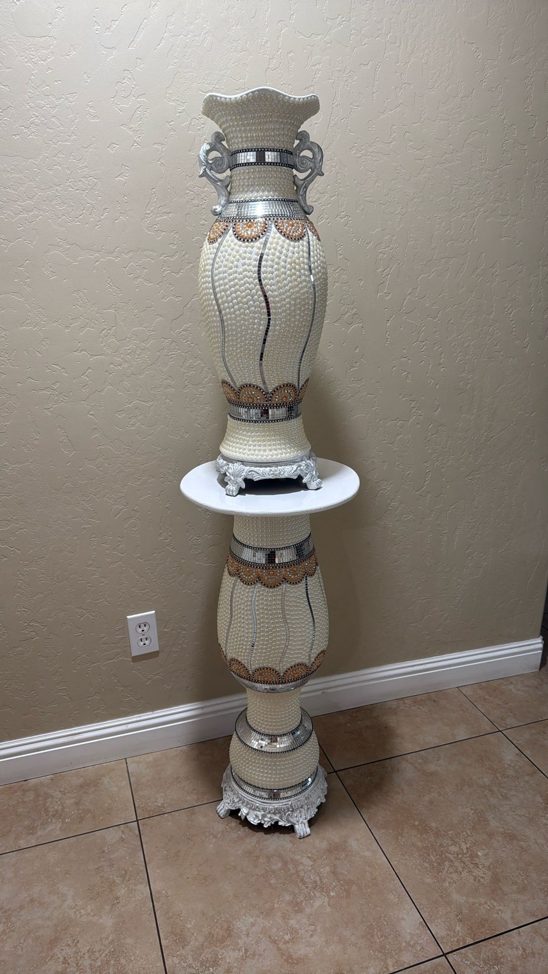White and copper diamond vase set