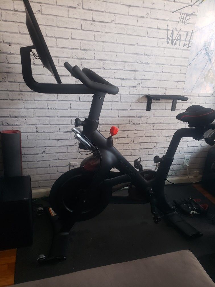 Peloton Bike For Sale, Light-Moderate Use. Great condition, comes with the 5 lb weights, heart monitor and I installed the wide aftermarket seat which is a game changer, also have the original seat it came with. Included the Bike Specs and history in pics. Will throw in the shoes, size 7 I believe. Local pickup only!