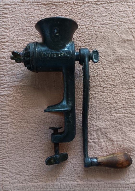 LF&C company Universal Grinder Patented 1889 Sturdy cast iron construction Fully functional Can fully disassemble for cleaning and sharpening Has been brushed clean with soap and hot water, bleached, and then boiled. Perfect for preppers because, no power required, Definitely a vintage collector's item.