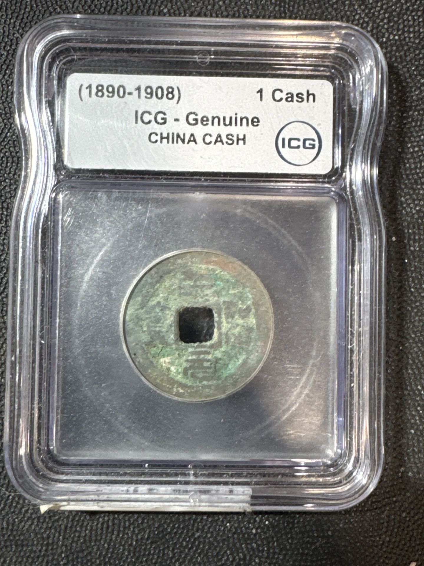 #94 ICG certified China 1 Cash coin (1890–1908) – Qing Dynasty era – genuine historical bronze coin
